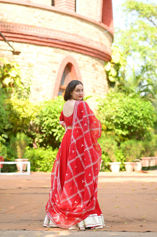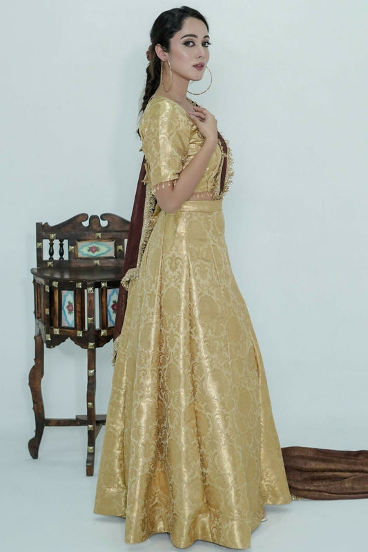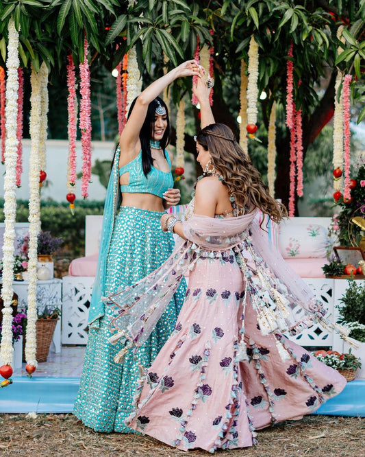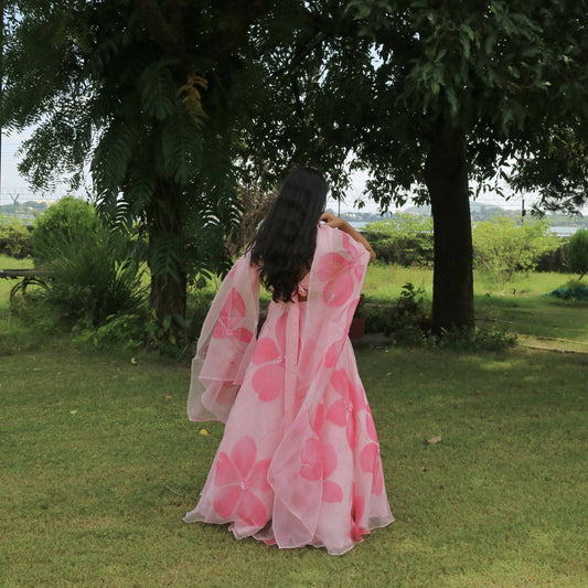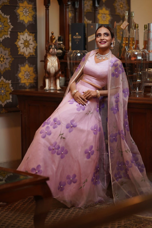 Dogwood Organza Hand-Painted Lehenga Enhanced With Pearls