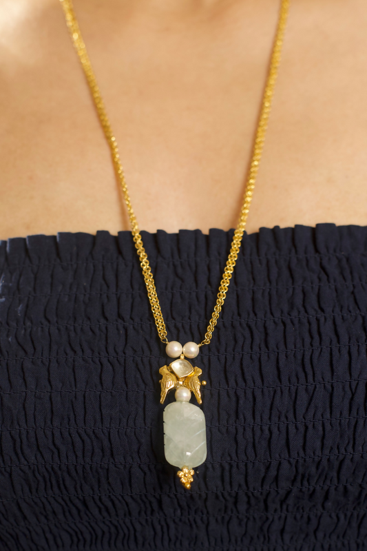 Love Birds & Pearl Chain Necklace - Sky Blue