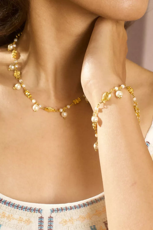 Golden Fish & Pearl Close Necklace