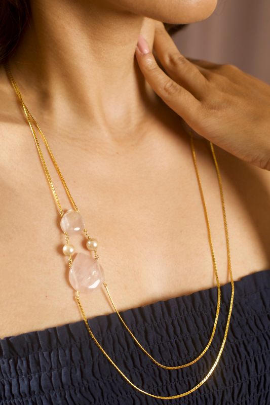 Rose Quartz & Pearl Slinky Chain Necklace