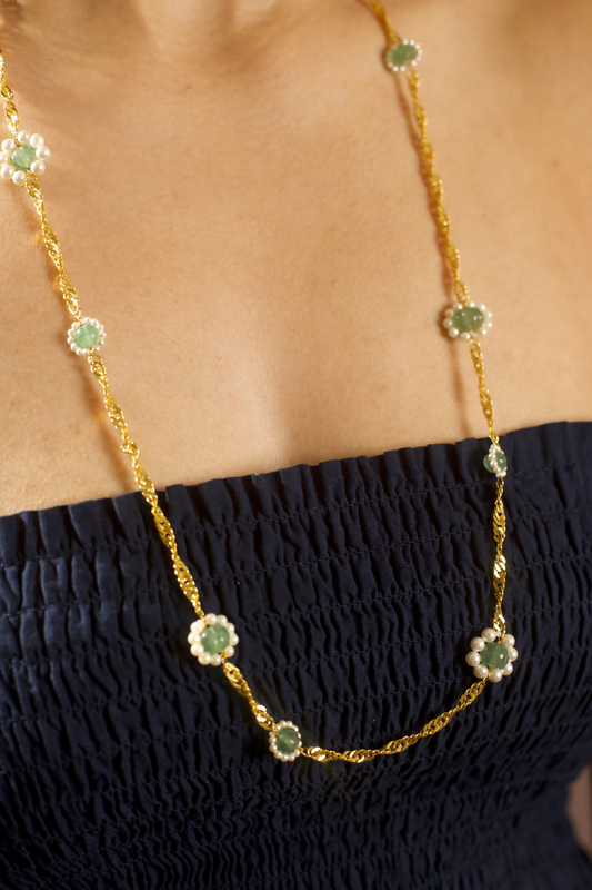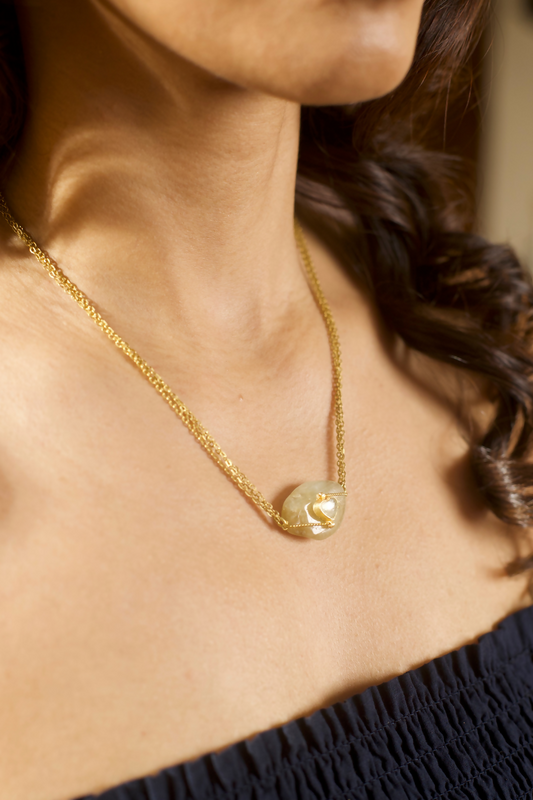 Heart Polki Encrusted Close Necklace - Peridot Green