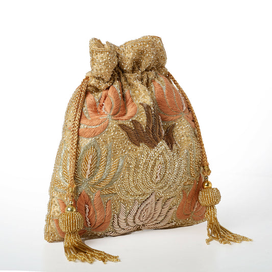 Golden Lotus Potli Elegant Floral Touch