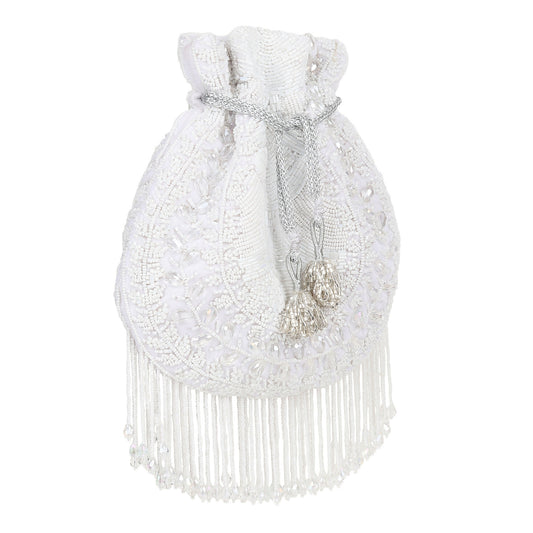 Snowflake White Cutdana Velvet Potli Bag