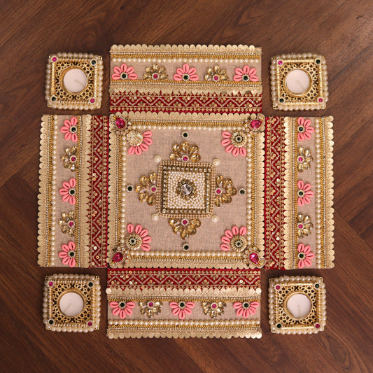 Sold outPink & Gold Square Festive Rangoli