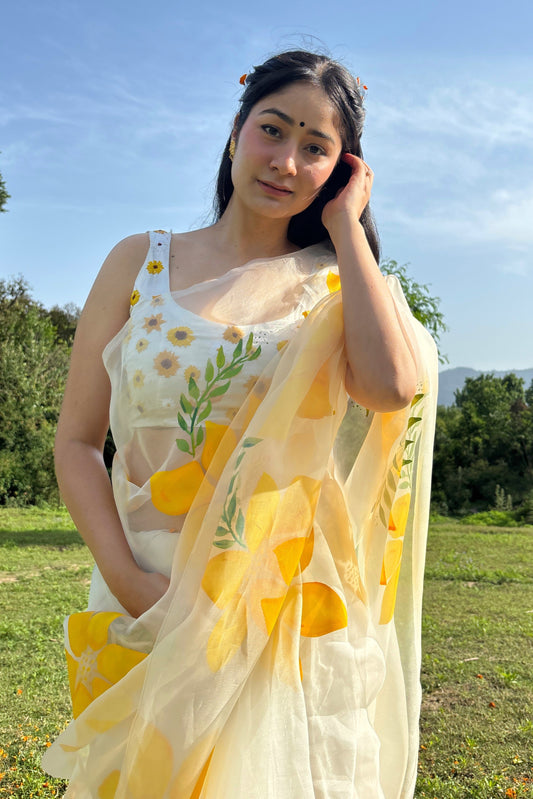 Natural Flower Dyed Ombre Organza Silk Saree with Gota Border