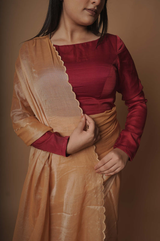 Goldilocks Garden Dark Beige Scallop Border Cotton Silk Saree