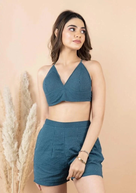 Mitti Green Embroidered Dobby Shirt with White Chikan Bralette Combo