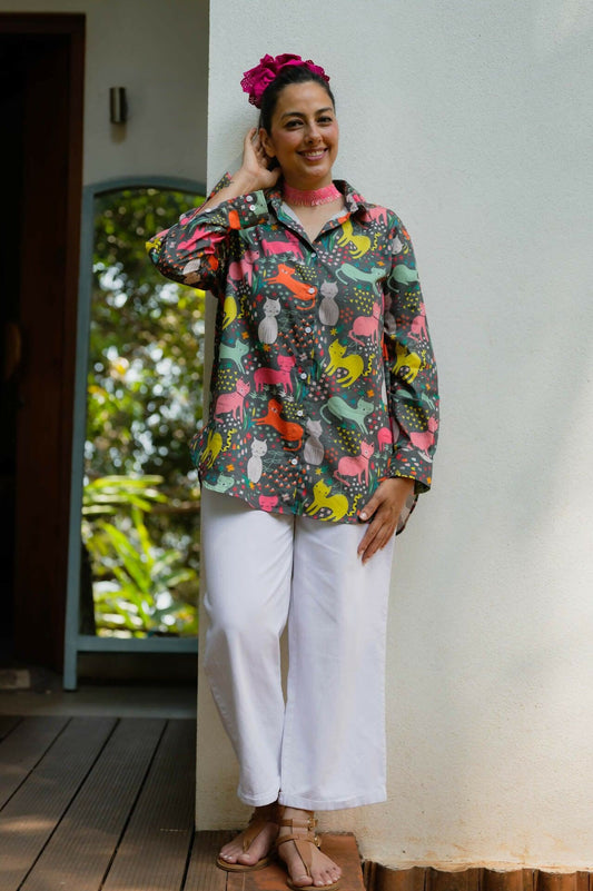 Rust Celestial Hand-Embroidered Cotton Shirt