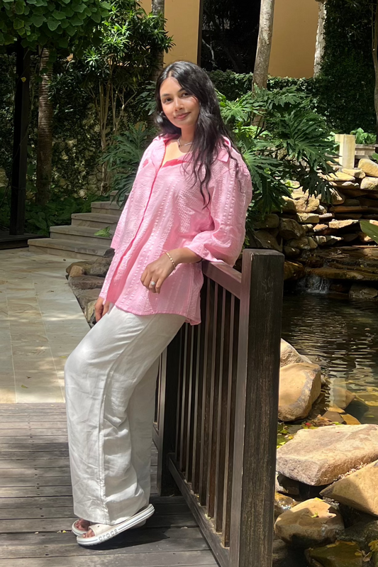 Black Crush Cotton Shirt with Jute Bralette Combo