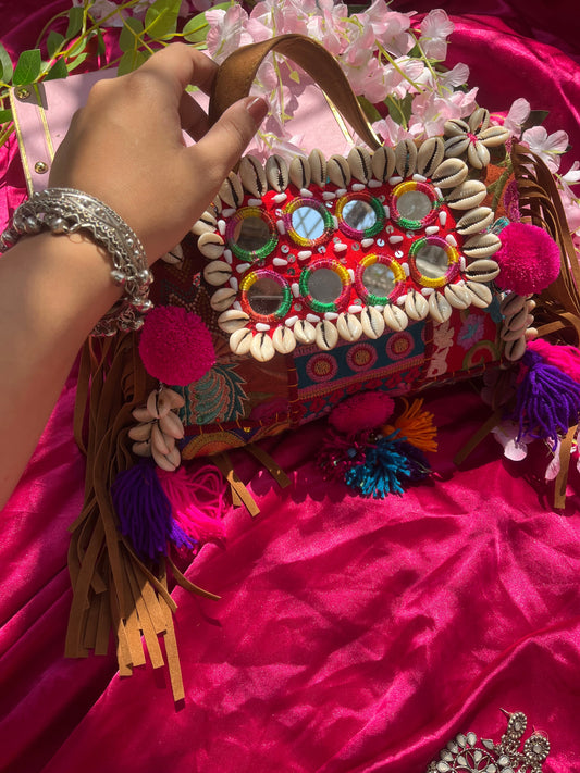 Pink Boho Bag With Tassel And Heavy Work Belt
