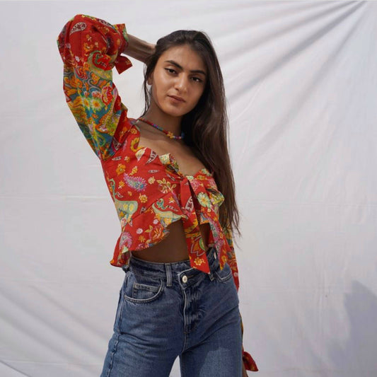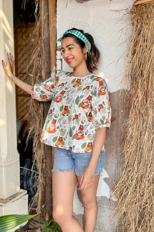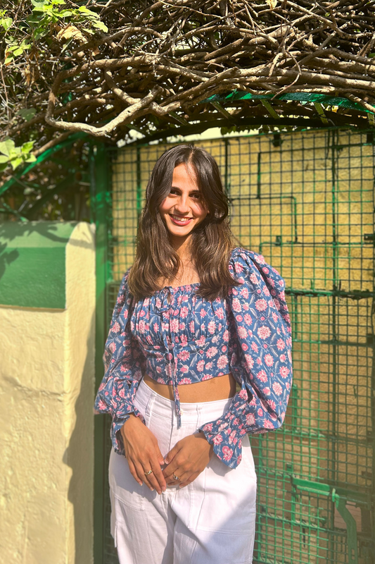 Pink Smocked Top Crafted in Pure Hand-Printed Cotton