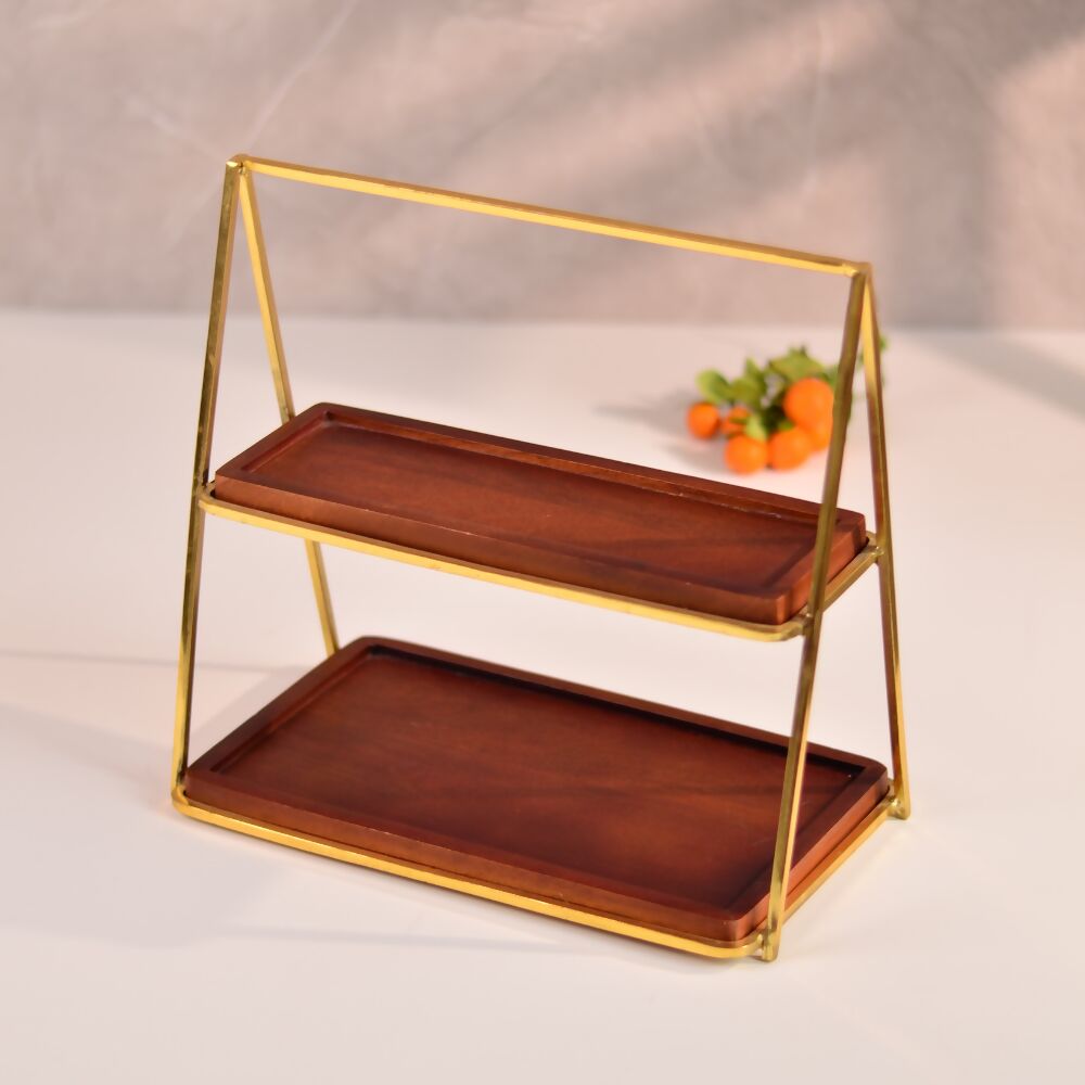 Our 2 tier-serving stand/ Serving tray is the ultimate solution to keep your home clutter-free while adding a touch of elegance to your space. This sleek and functional organizer is designed to seamlessly blend into any room, serving multiple purposes in the kitchen, bathroom, as serveware, and as a decorative accent. The intricate design adds that touch of delightfulness. Suitable as a Kitchen organiser and Serving snacks & desserts.