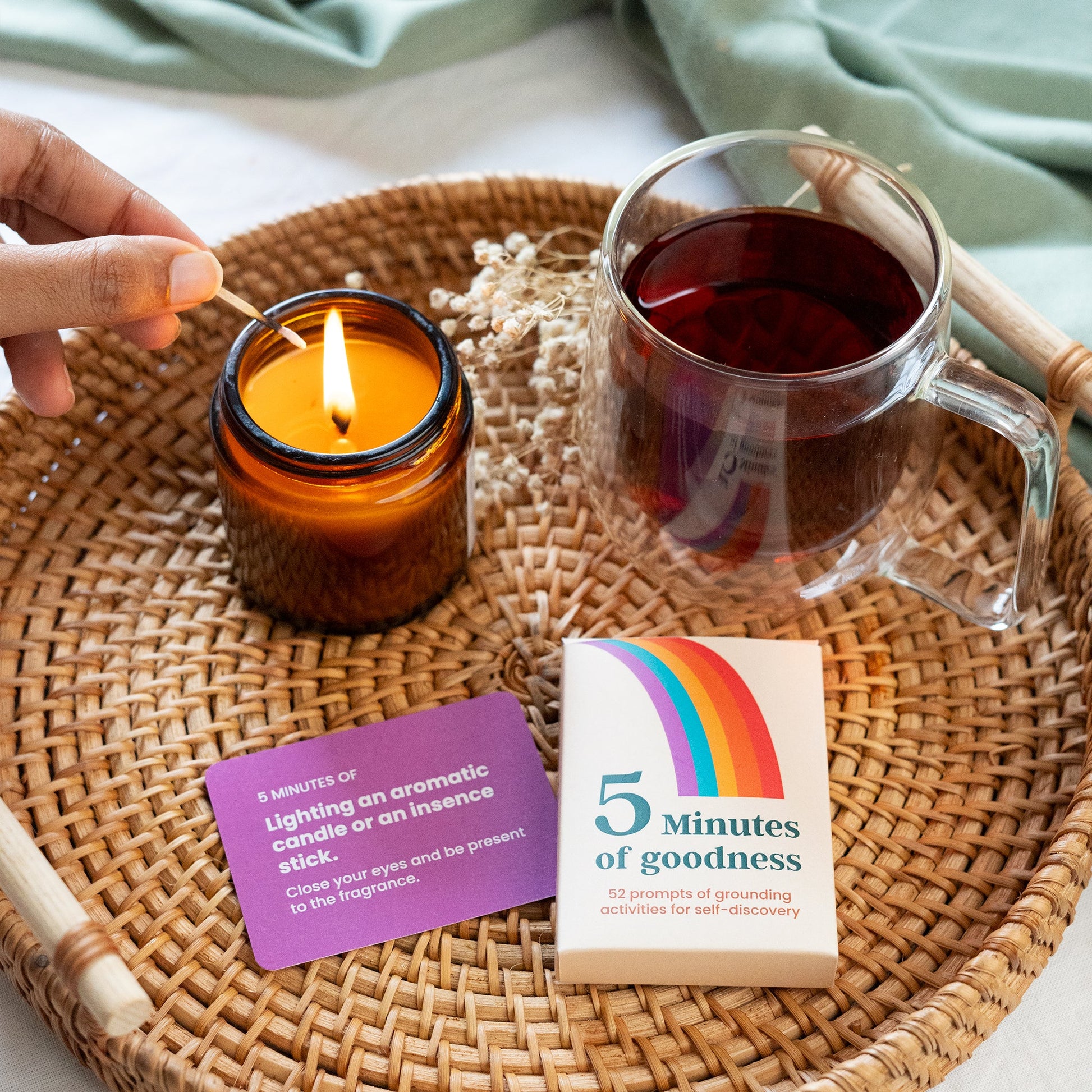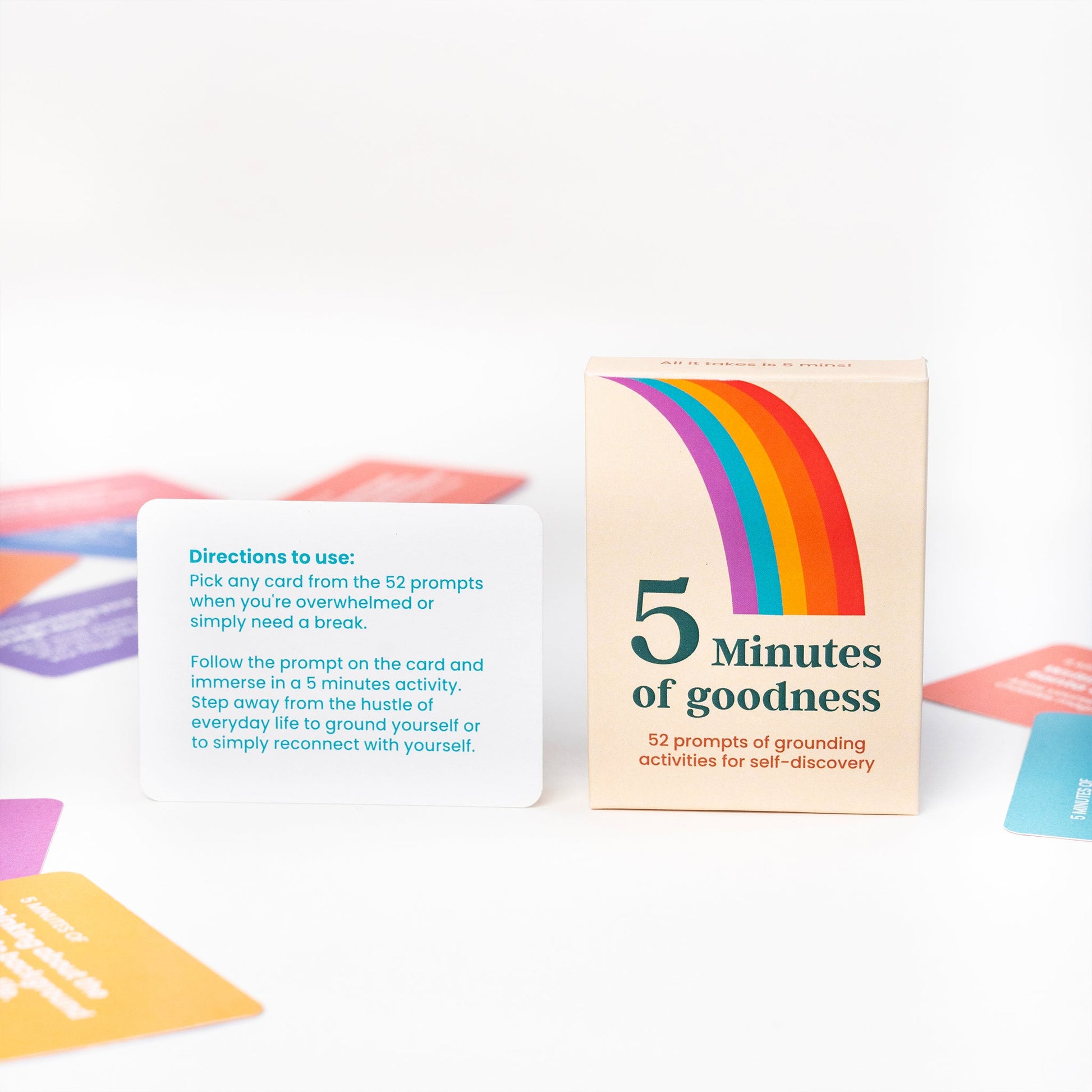 Pause. Take a break and give yourself 5 minutes to enjoy activities or ponderings that can be done in a jiffy. These 52 cues can help you reconnect & recenter.Tuck this deck in your bag & take it with you wherever you go.