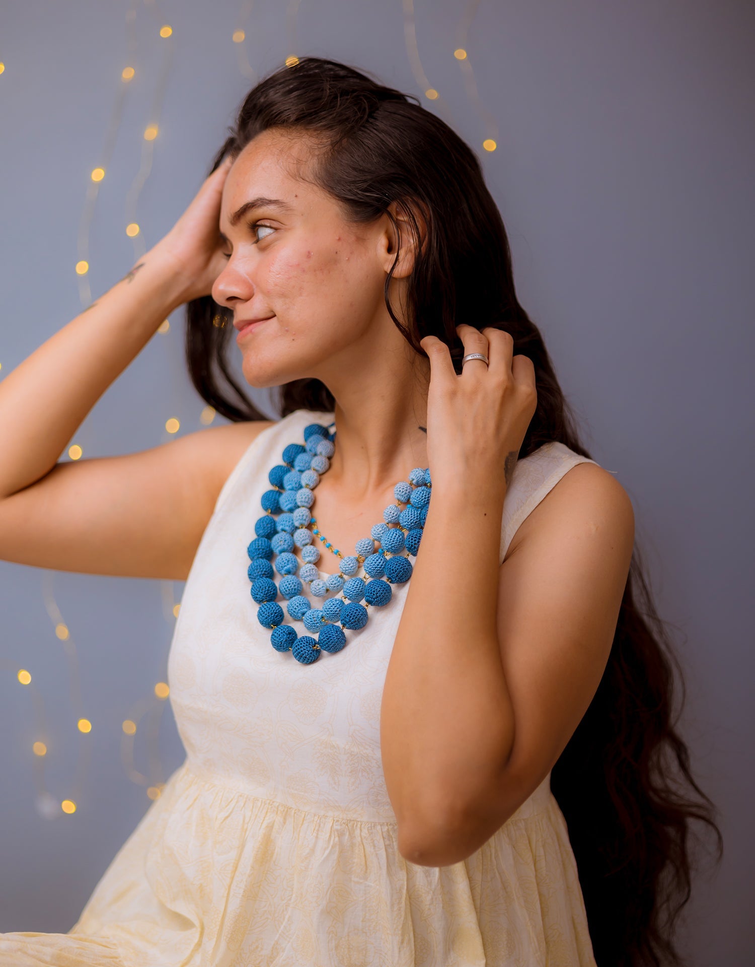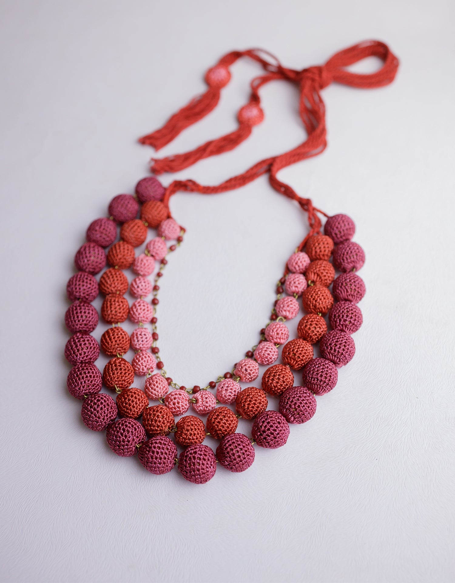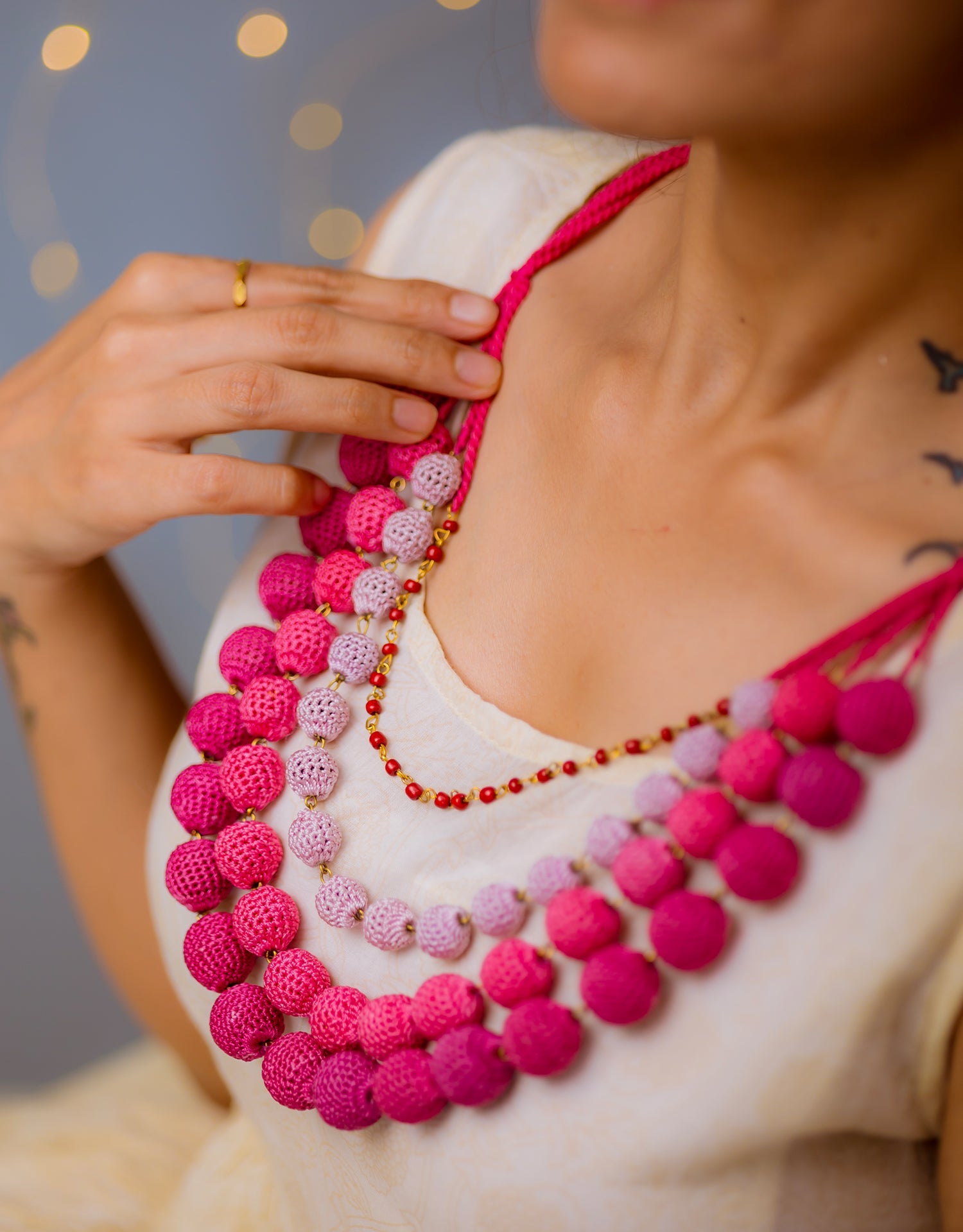 The Aadya Hand-Crochet Ombre Necklace blends delicate craftsmanship with graceful ombre tones — a lightweight, layered piece designed to ground you in your roots and radiate the energy of where you come from.k.