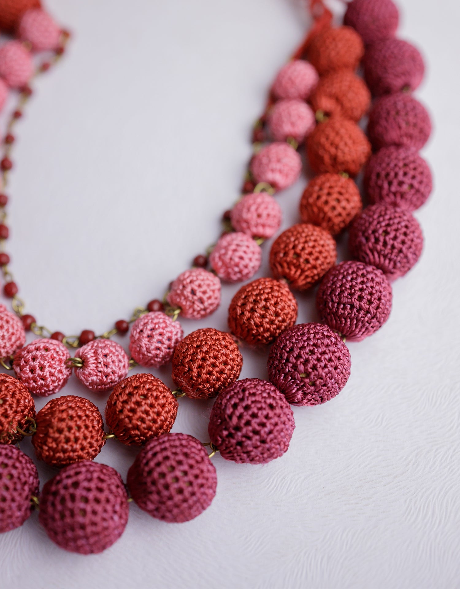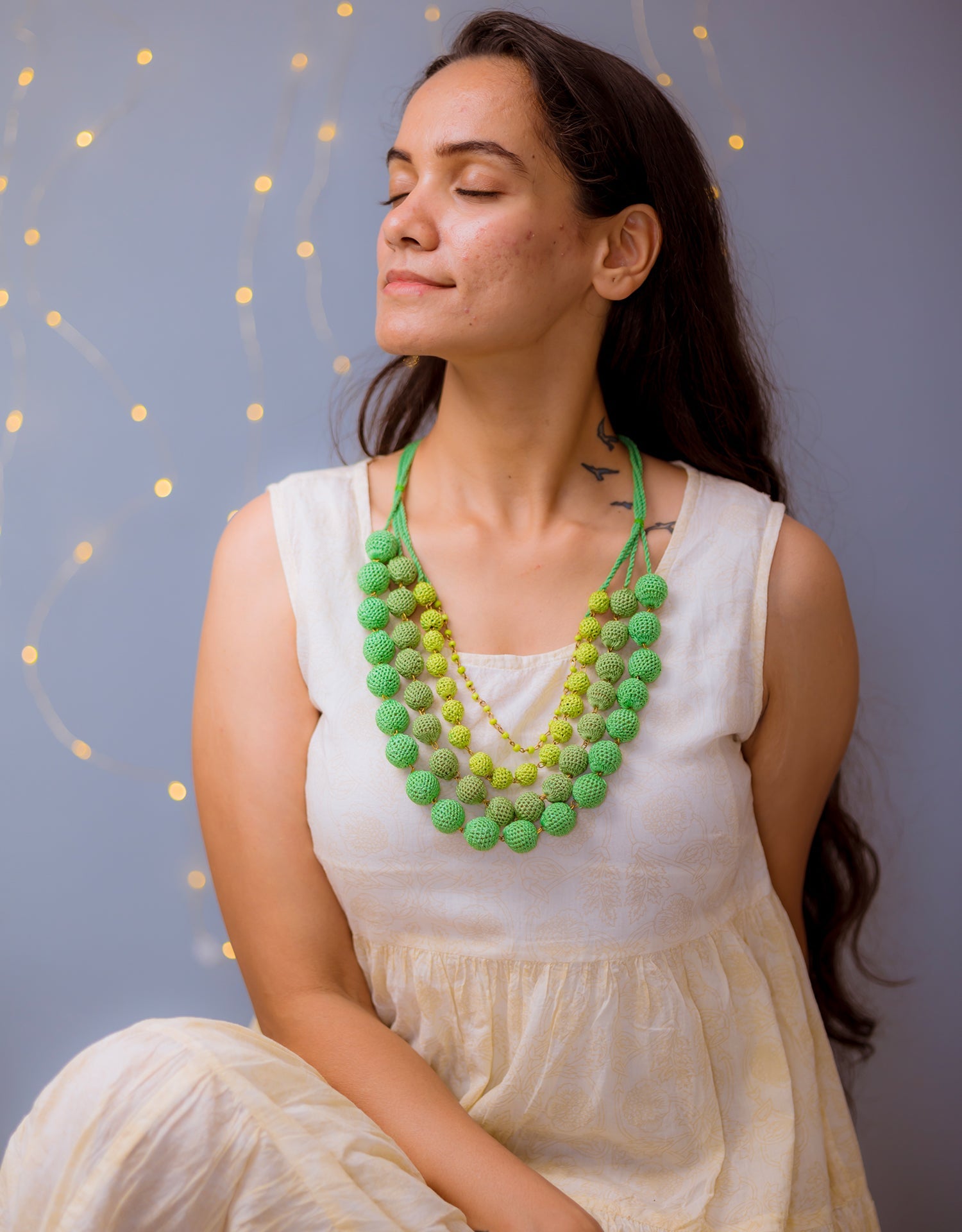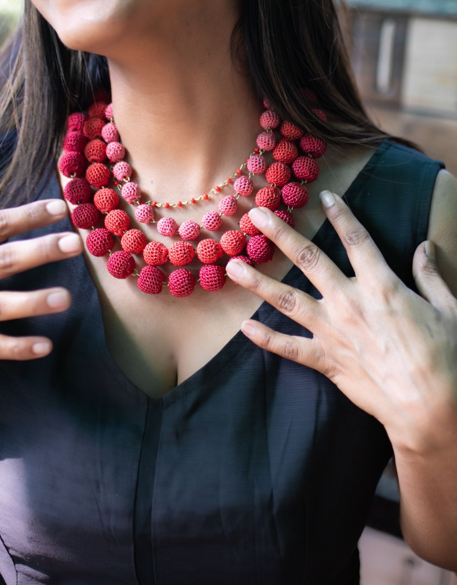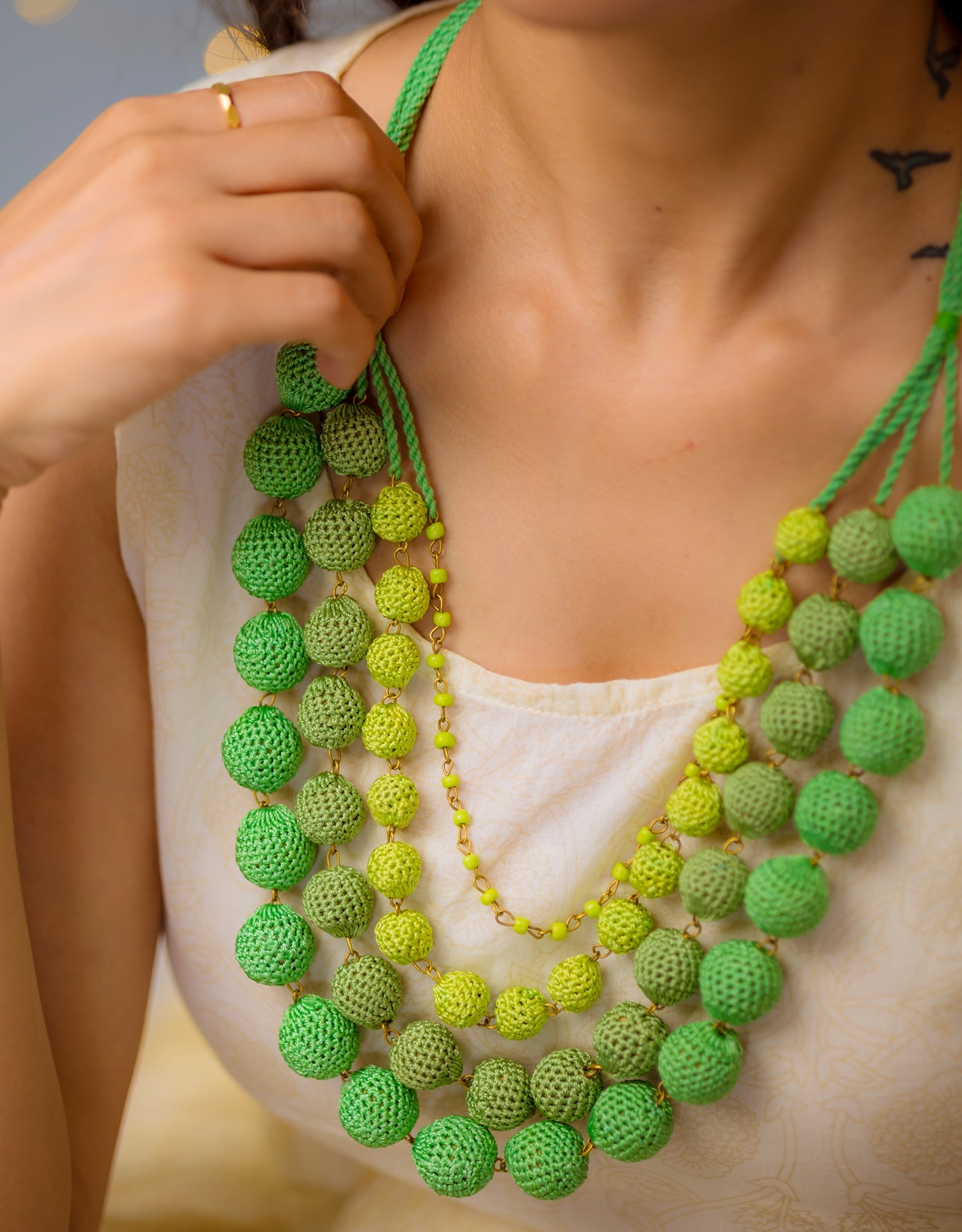 The Aadya Hand-Crochet Ombre Necklace blends delicate craftsmanship with graceful ombre tones — a lightweight, layered piece designed to ground you in your roots and radiate the energy of where you come from.k.