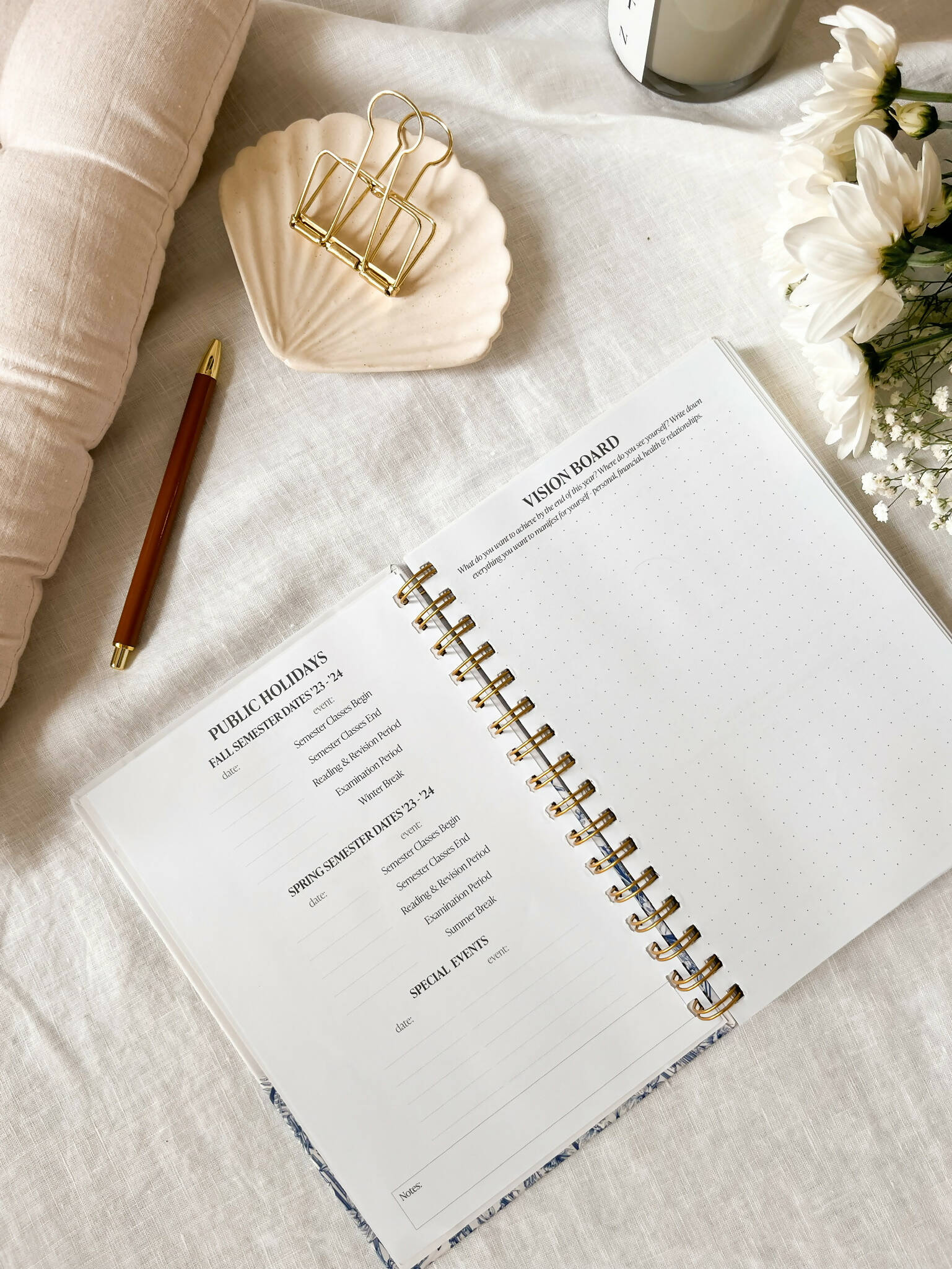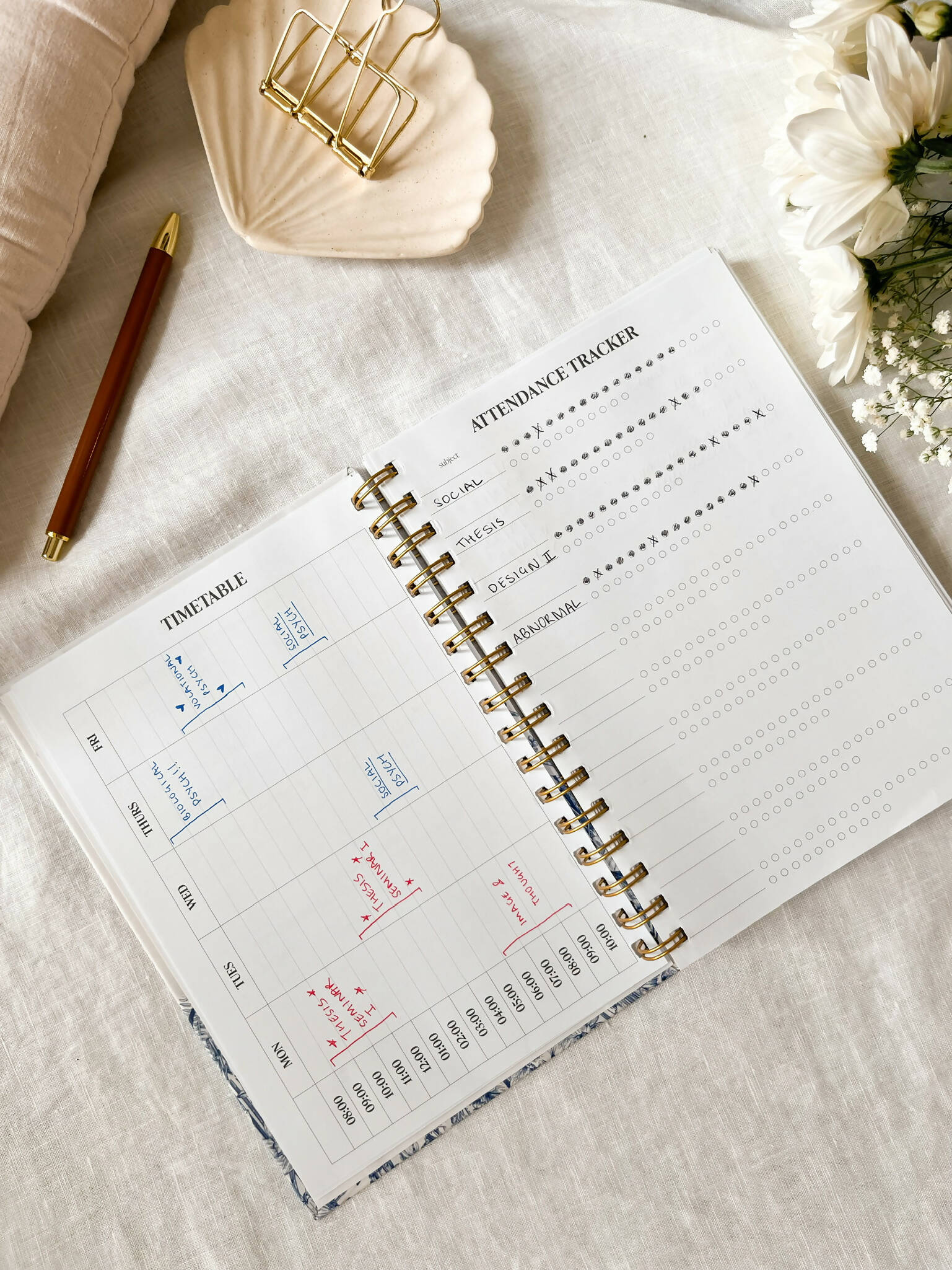 Efficiently plan out your semesters, classes, weeks and days, so that you stay on track with your studies whilst having time for fun. Organise and prioritise your workload, giving you the thinking space that will enable you to get your best results. Feel prepared when it comes to deadlines and exam seasons, putting an end to panicked cramming and library all-nighters. This planner can help you document minute details with its inbuilt semester details, vision board, attendance tracker, timetable template, deadlines & grade tracker, weekly planning template, finance tracker, notes pages, semester review, productivity and exam tips!