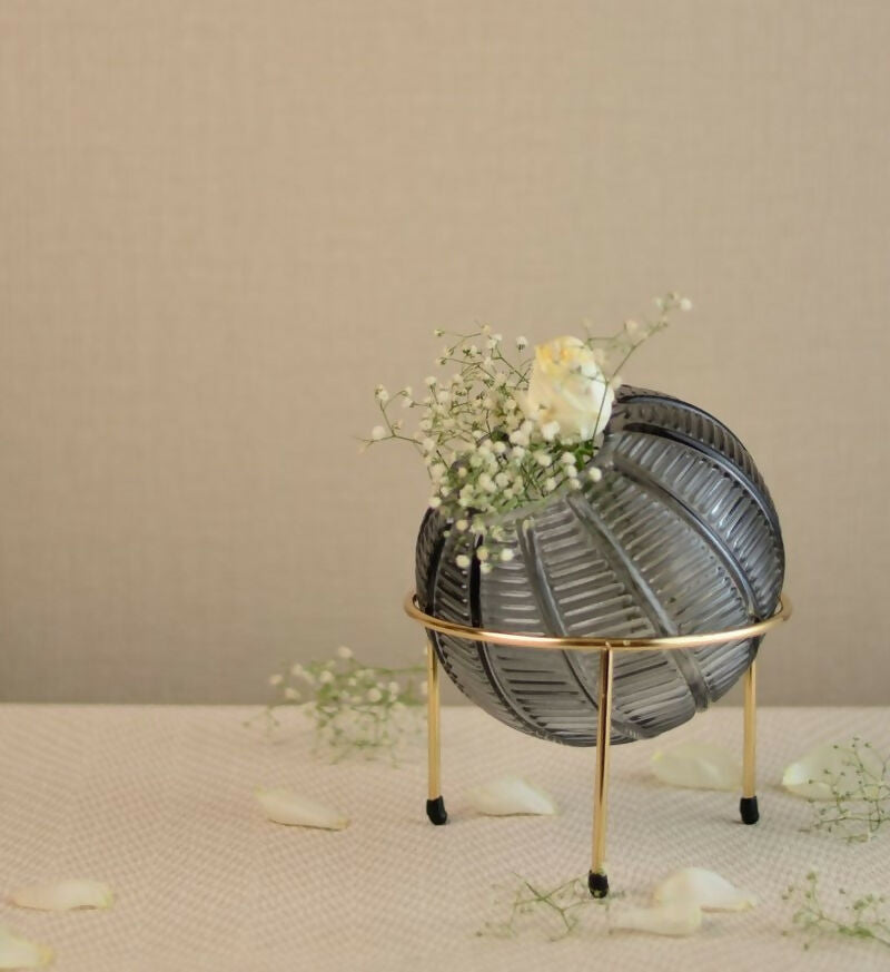 This Glass Flower Vase has a minimalist appeal and has been sandblasted to perfection. The narrow neck widens into a ball like structure giving it a unique appeal. This comes along with a stand, adorn it with fresh flowers to add lux to any space in your home.