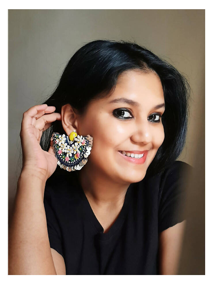 Embroidered with thread & beads this earring is a great statement piece and perfect for formal functions and parties. It also makes a great gift for your special loved ones.