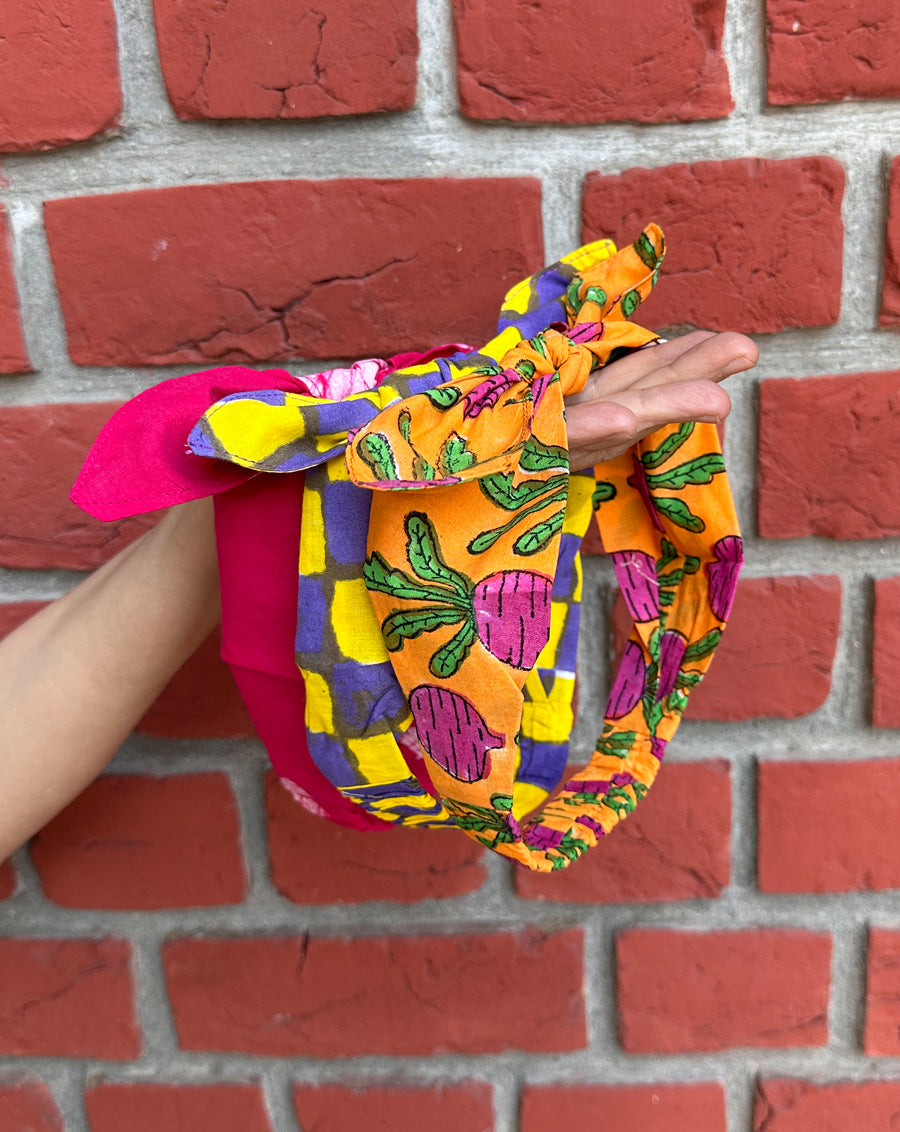 Beet-Gulabo-Cheq - Set of 3 Handcrafted Cotton Bow Hairbands