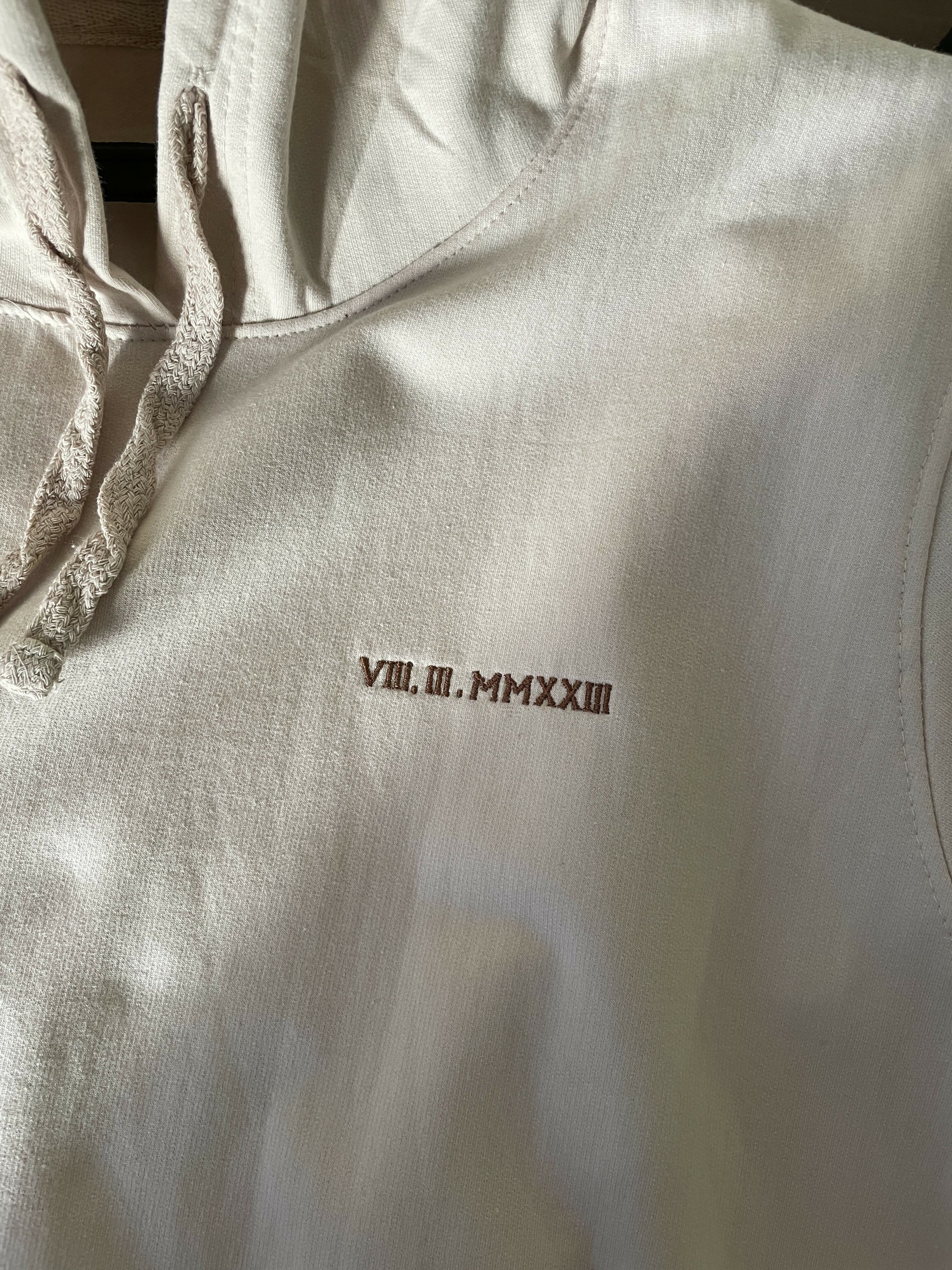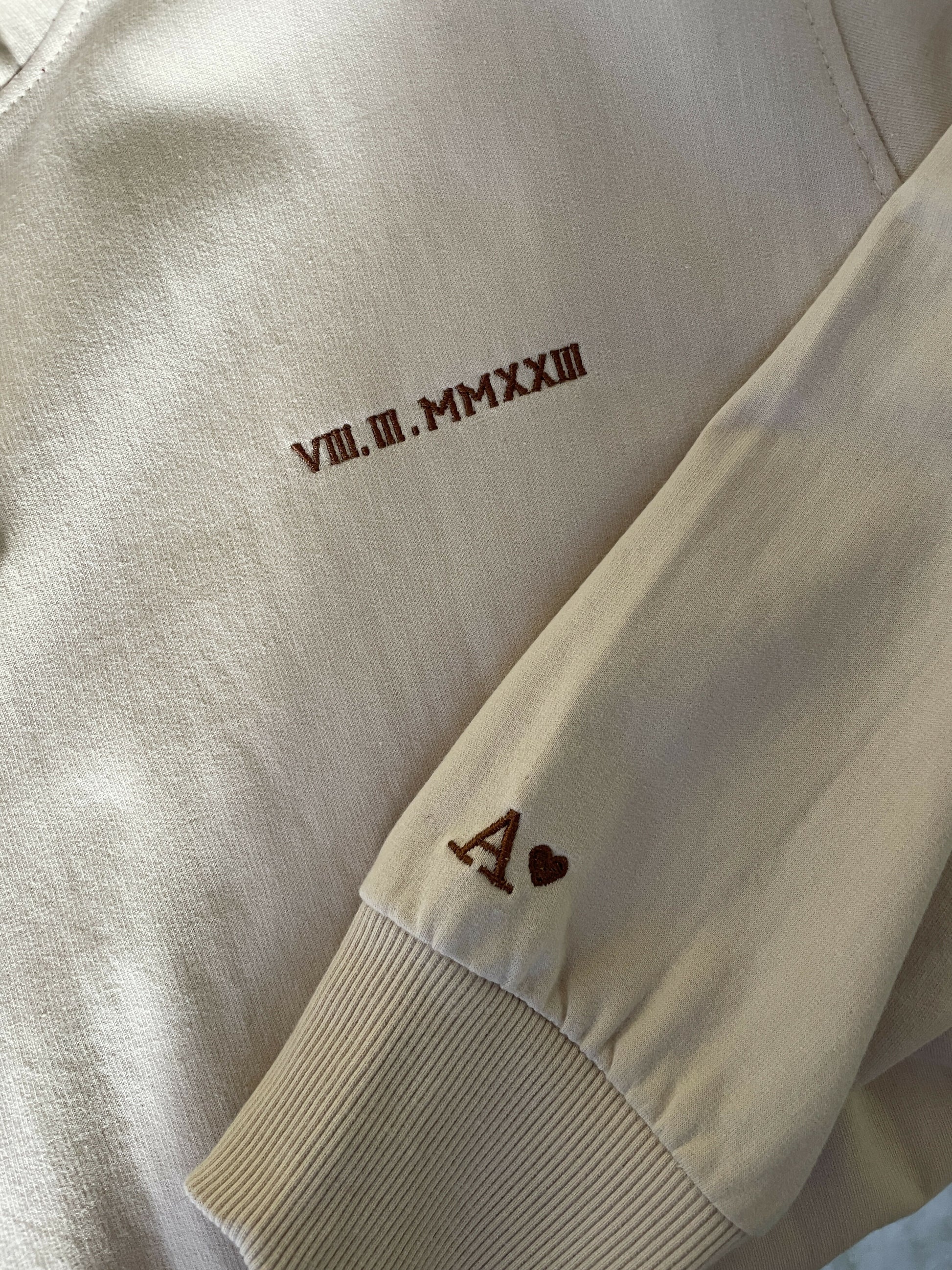 Personalised Date & Name Initial Beige Embroidered Hoodie