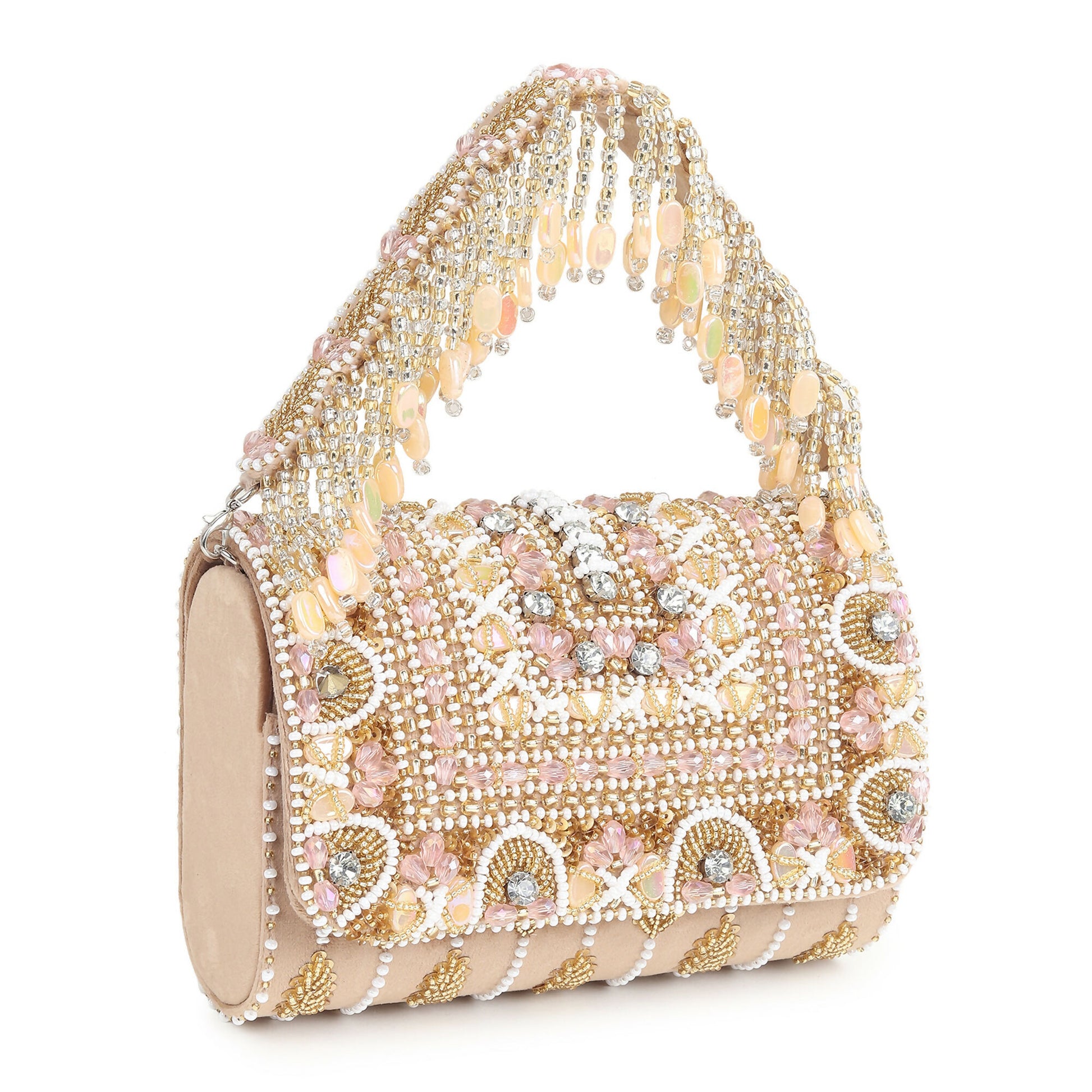 Beige Multi Stone Suede Flap Bag