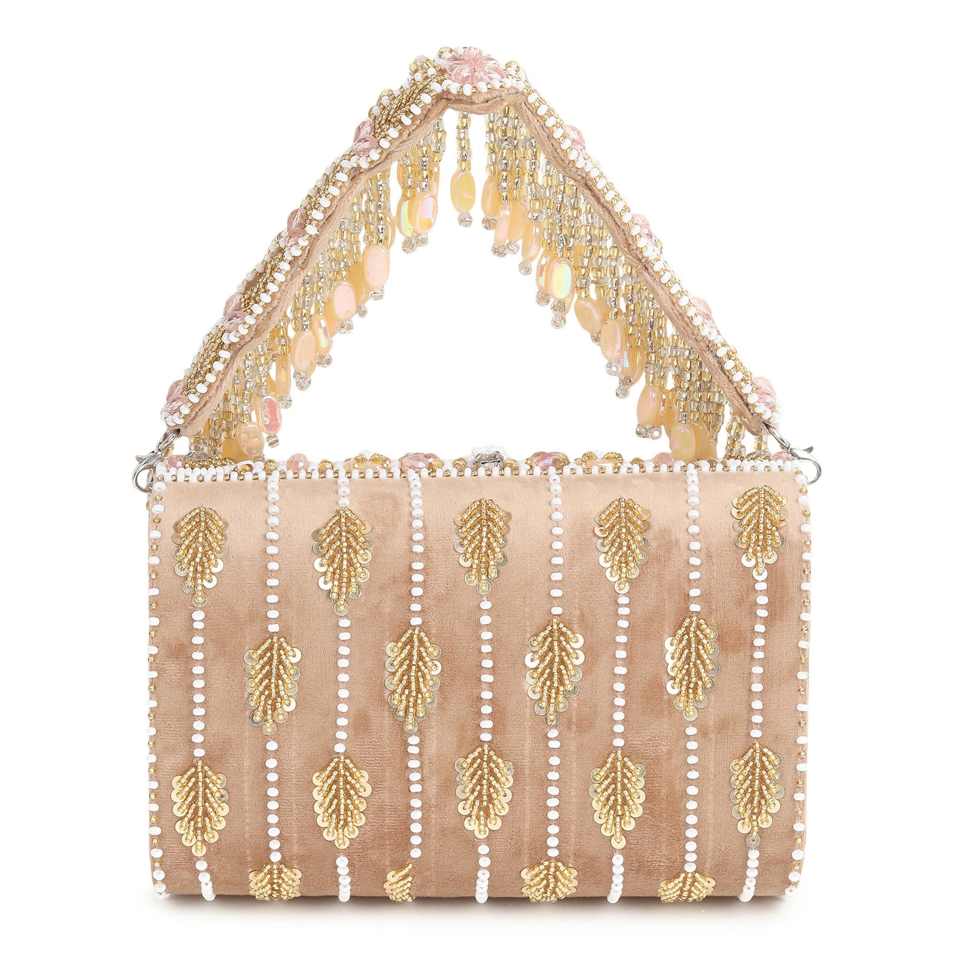 Discover the Beige Multistone Flap Bag, where sophistication meets style. Crafted from soft suede and embellished with an array of multi-colored stones, this exquisite bag exudes elegance. The chic short embroidered handle enhances its functional design, making it the perfect accessory for elevating any outfit. Ideal for both day and evening wear, this bag is a statement piece that effortlessly captures attention.