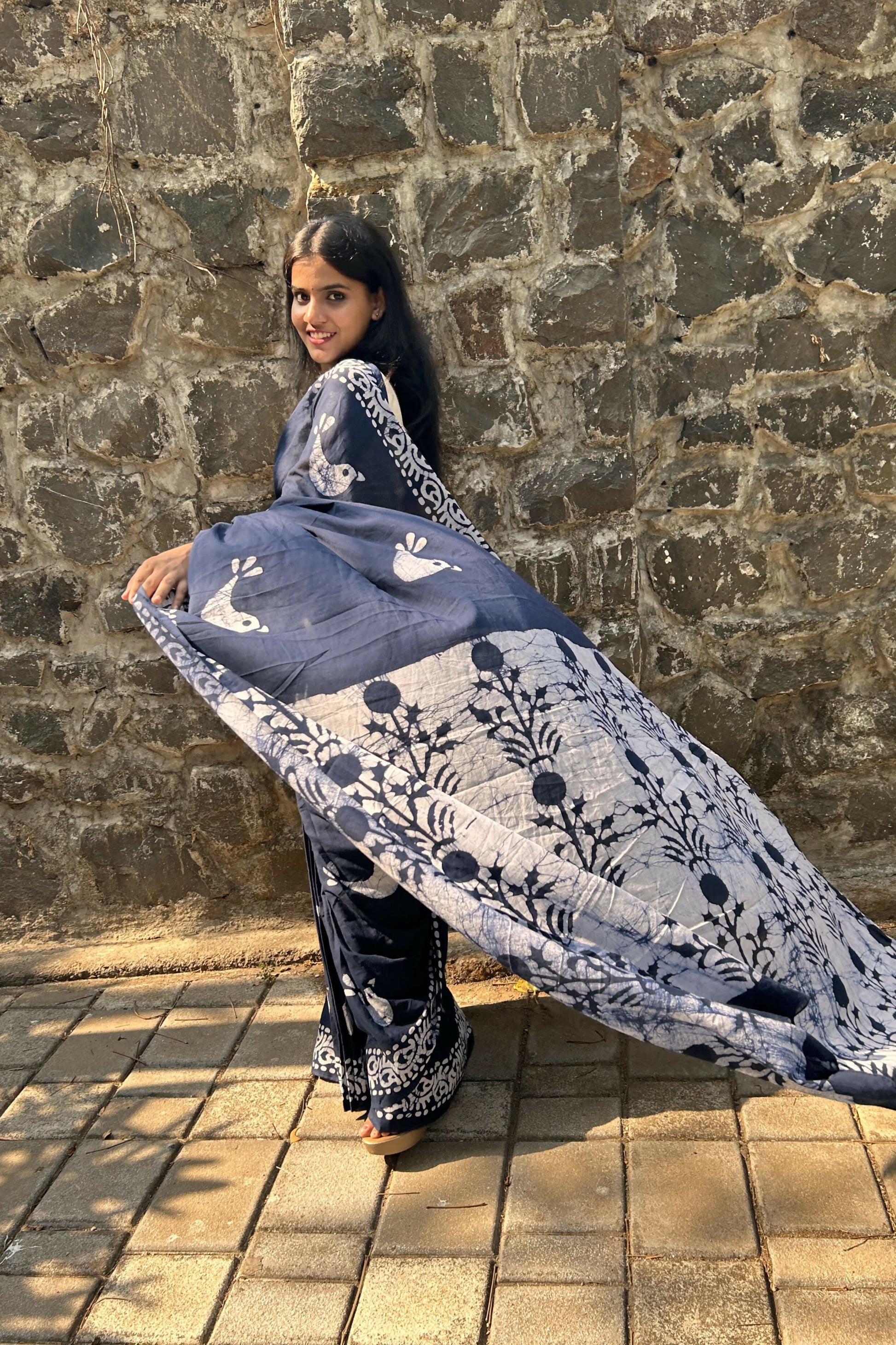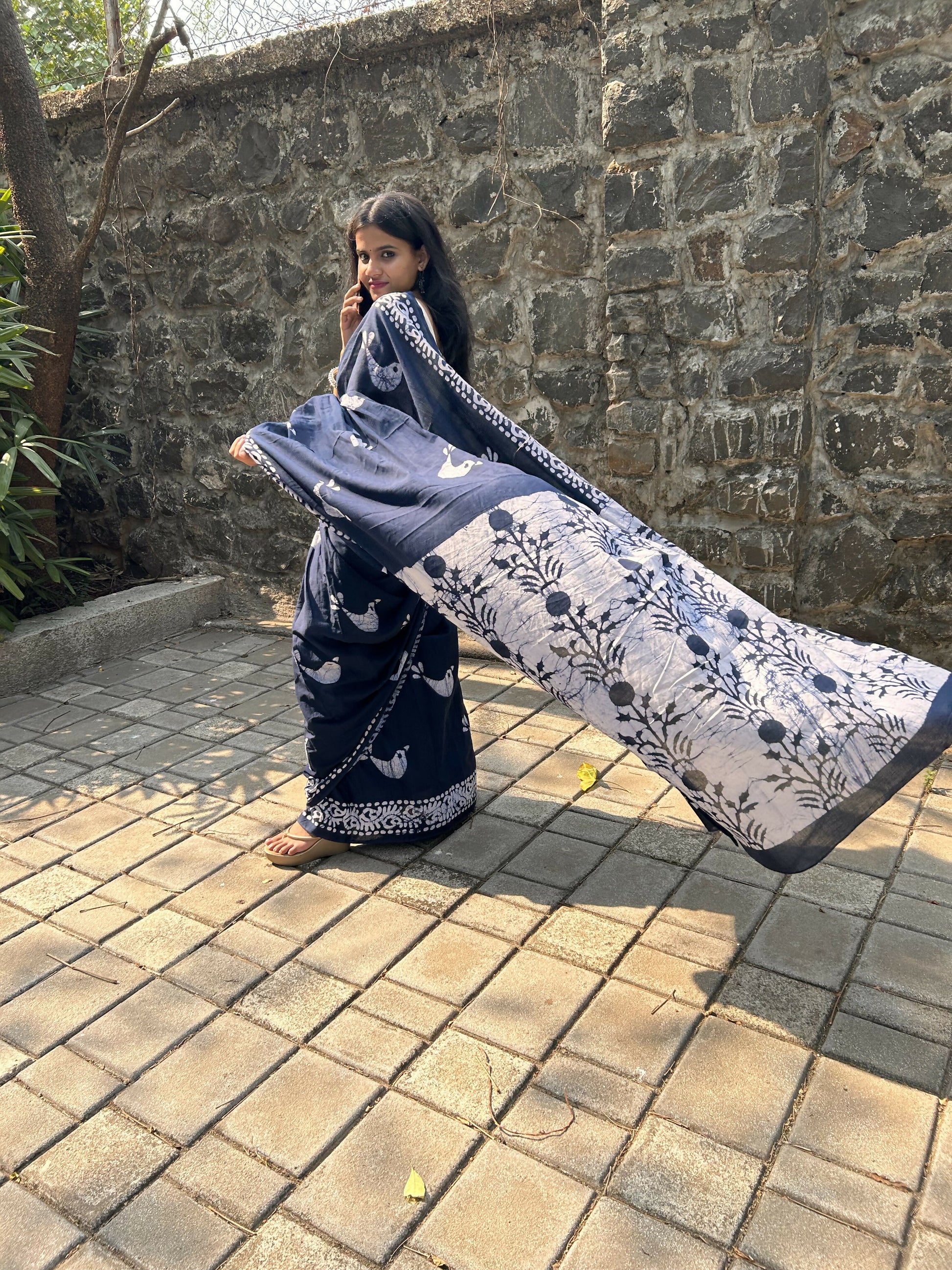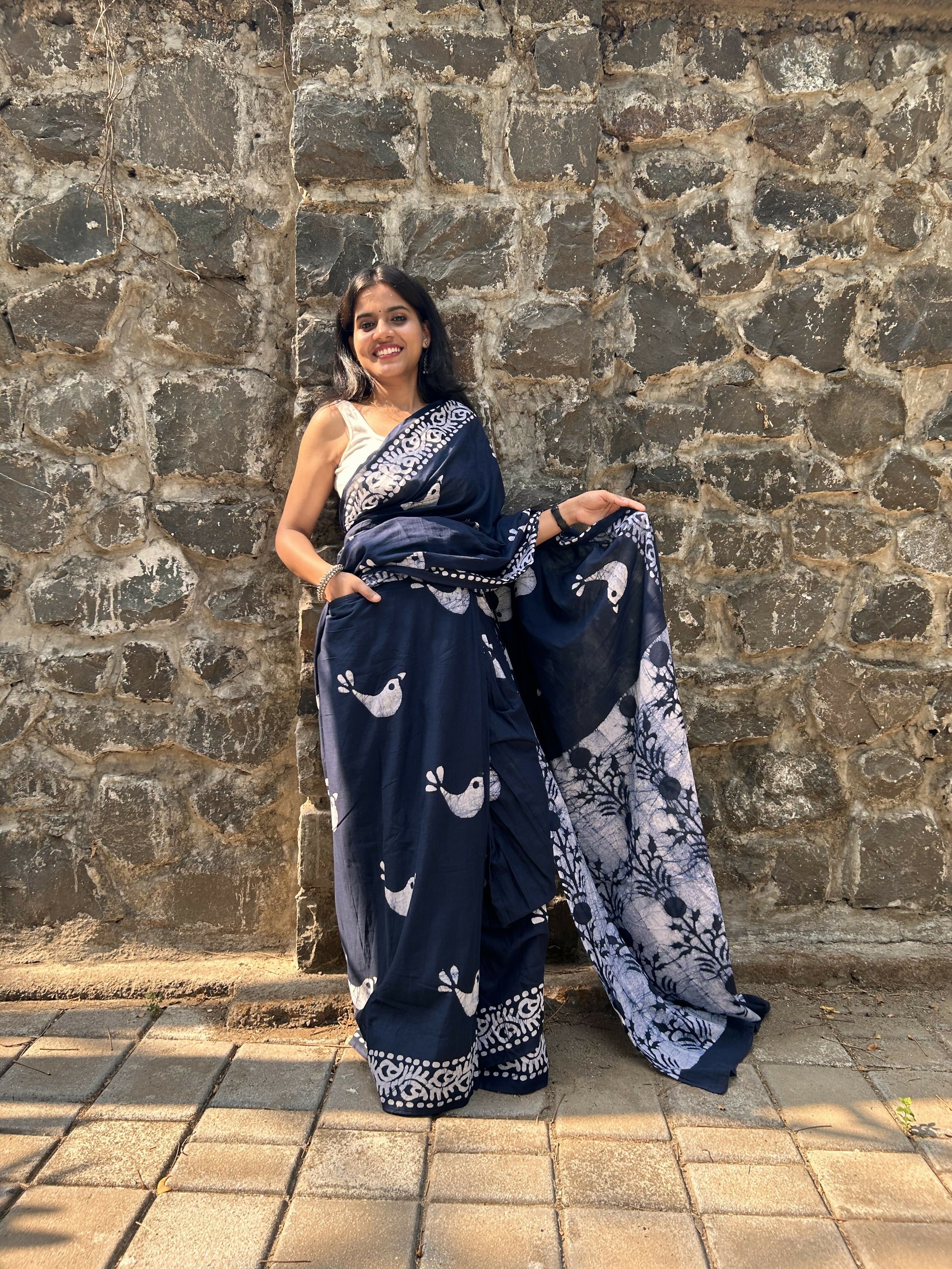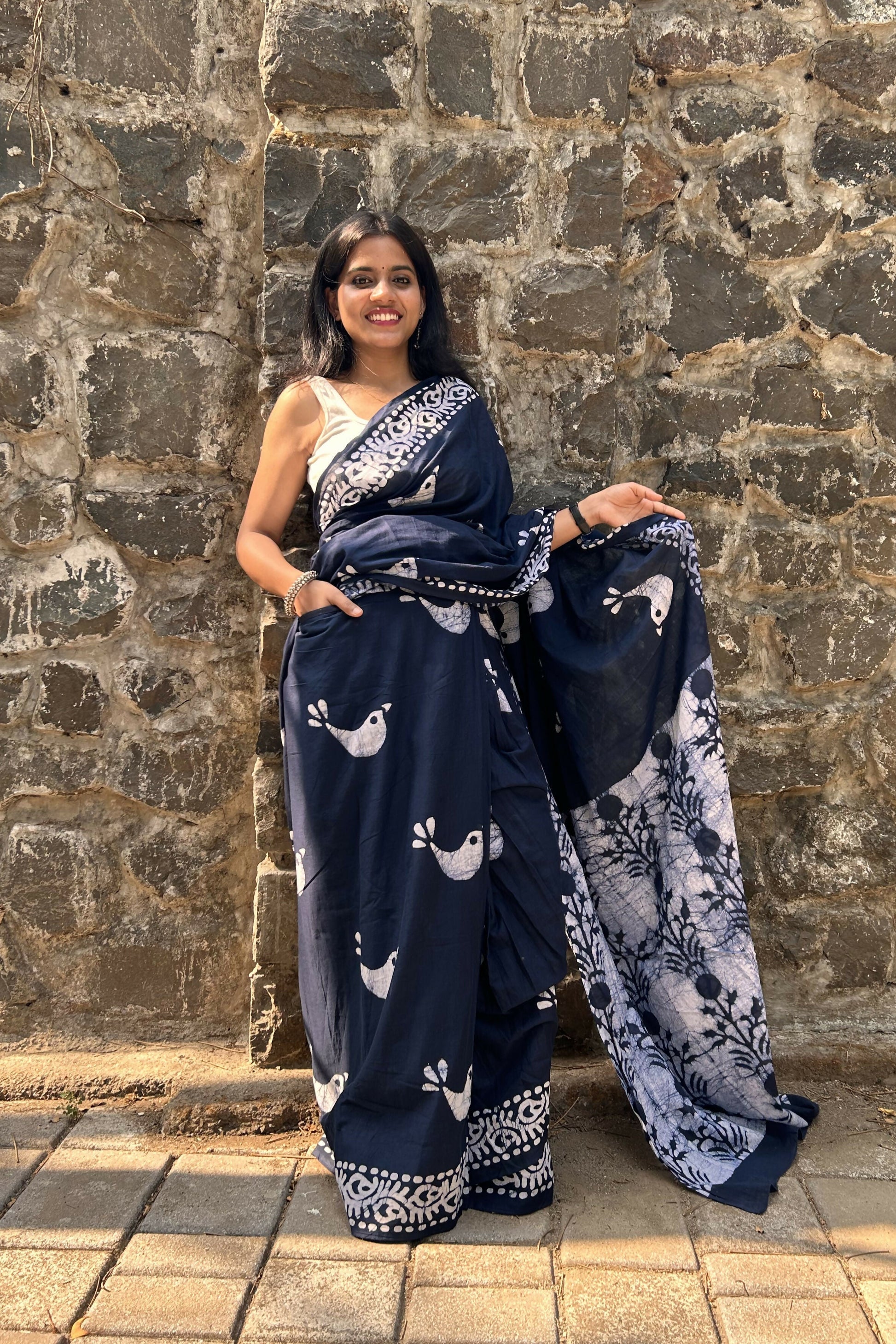 - Blouse piece: It comes with an 80 cms of unstitched cotton blouse piece.