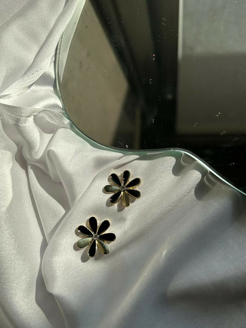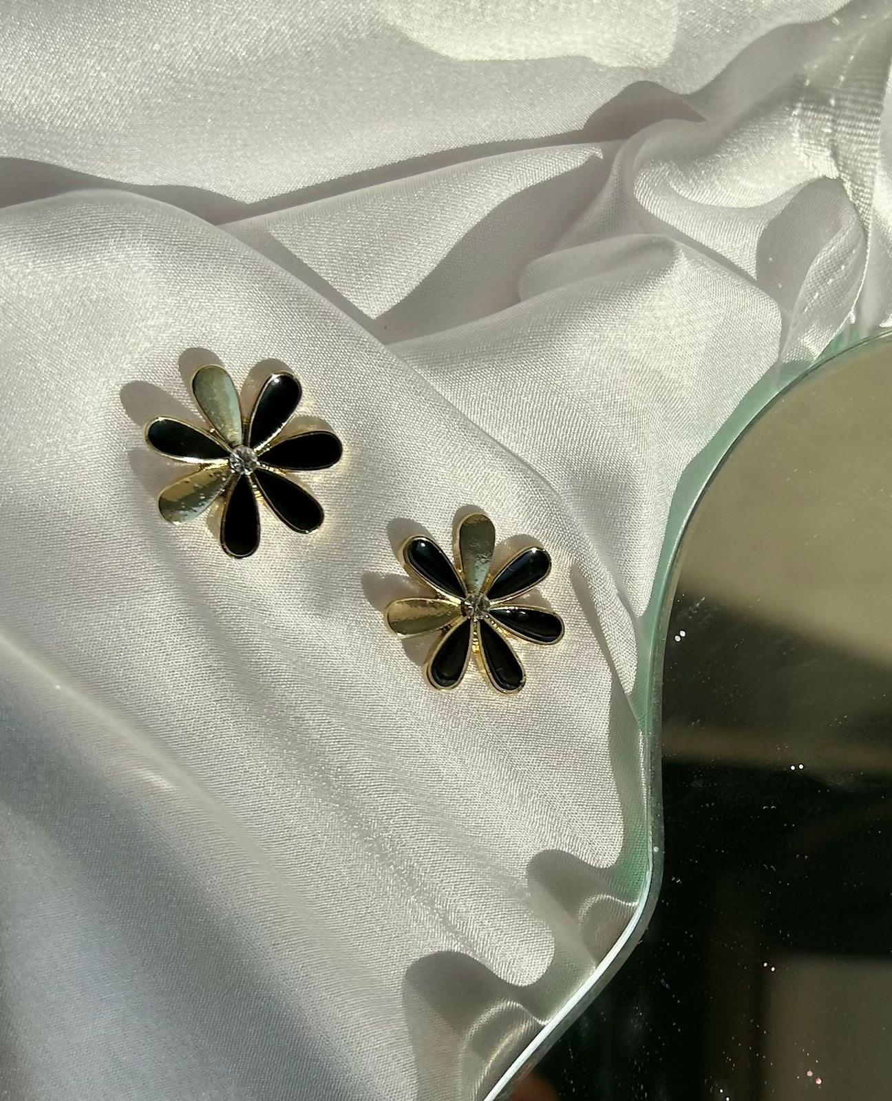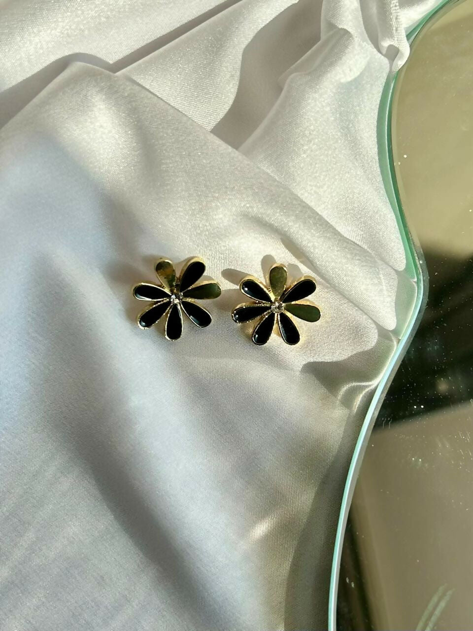 Gorgeous black and gold flower earrings! Eye-catching design adds flair to any outfit. Versatile and chic, perfect for everyday wear or special occasions.