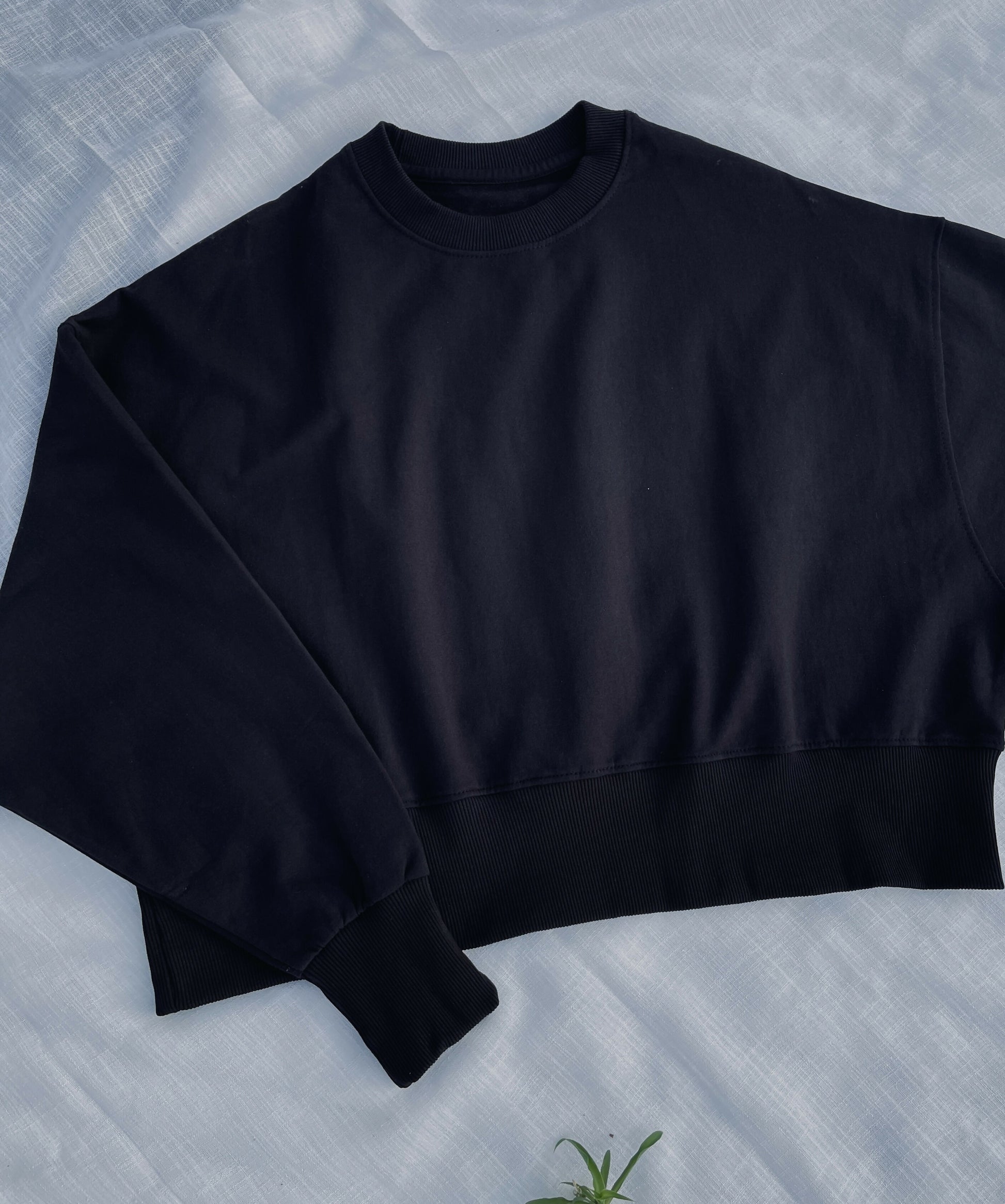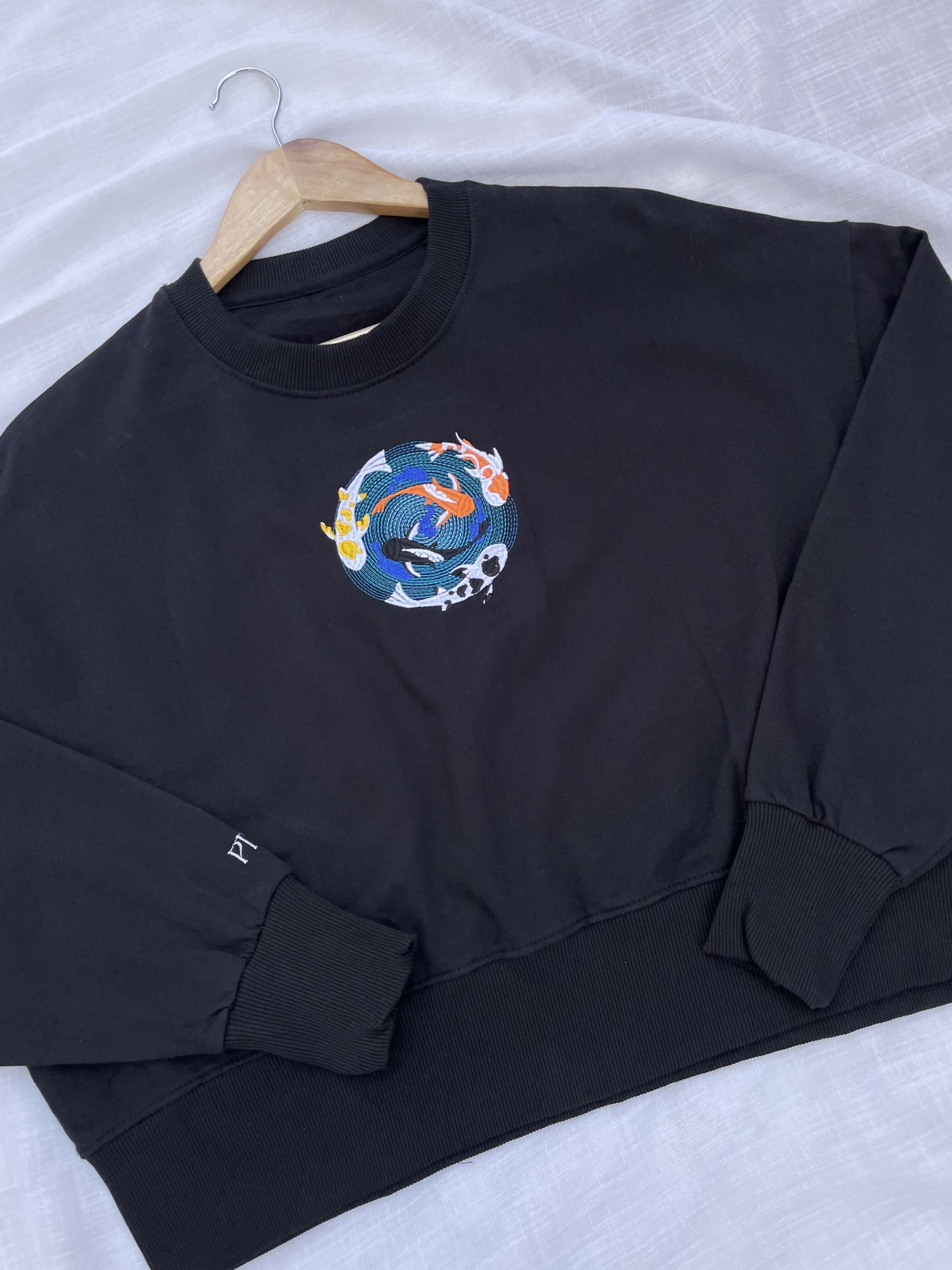 Fish Pond Embroidered Black Cropped Sweatshirt