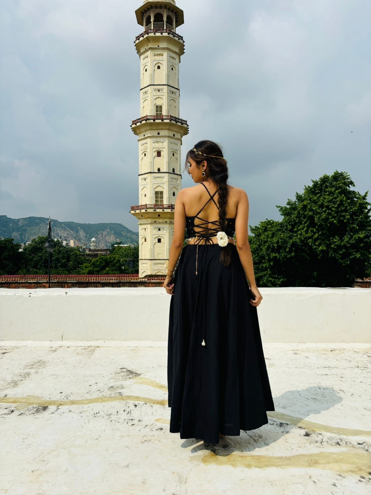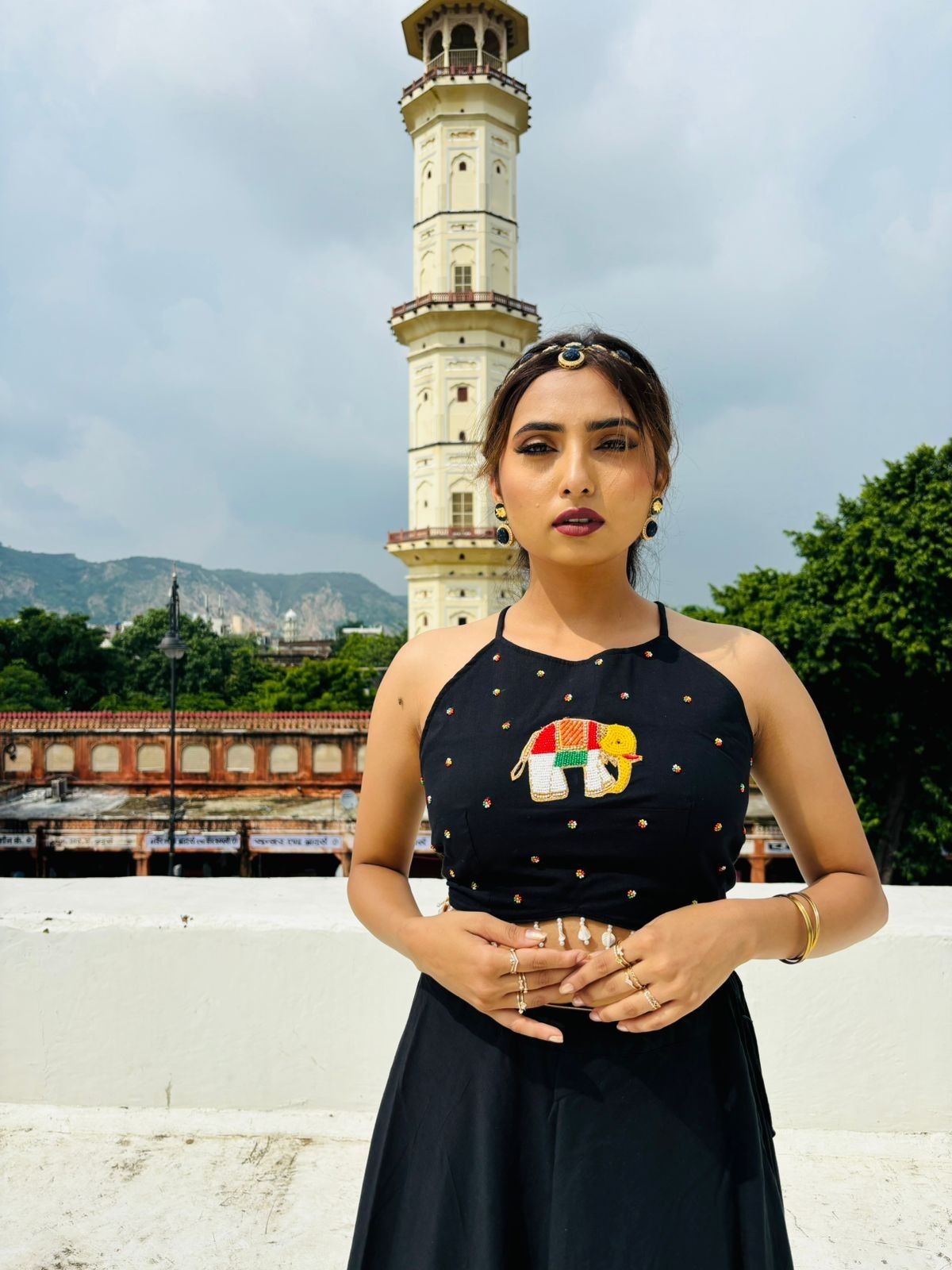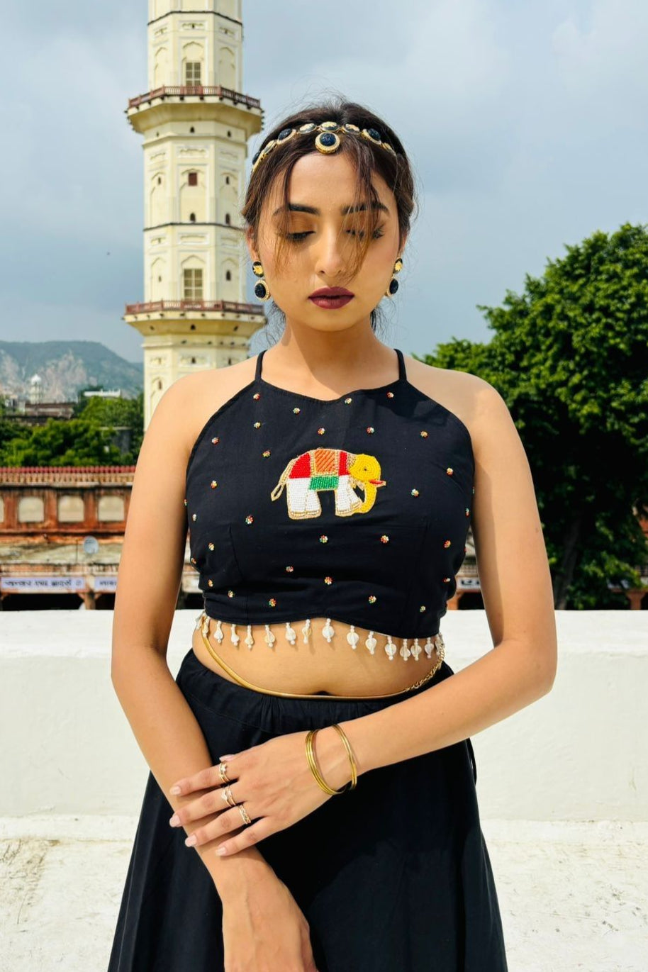 The Black Elephant Handwork Criss Cross Top is a striking piece that blends artistic craftsmanship with modern style. Featuring intricate elephant design, this top adds a unique, cultural touch to your wardrobe. The criss-cross design enhances its contemporary appeal, offering a flattering fit and an eye-catching silhouette. Made from soft, breathable fabric, it's perfect for both casual and semi-formal occasions.