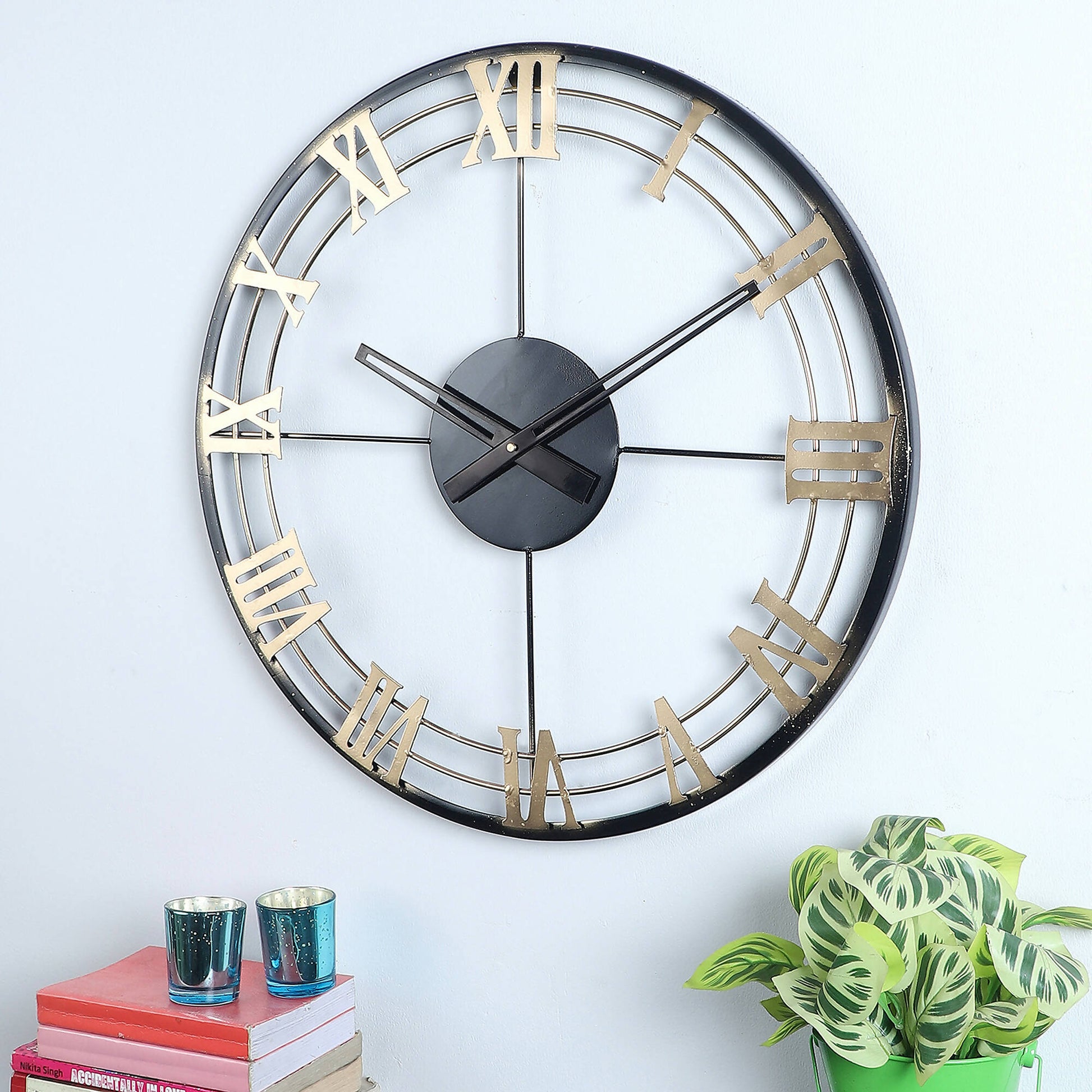 A Black & Gold Roman Number Wall Clock. Will Look Elegant in your Home or Office.