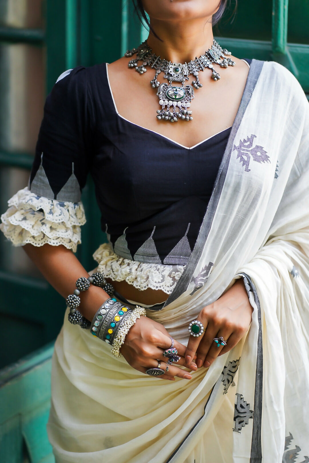 Elegantly designed to complement any saree, this blouse is a timeless fusion of tradition and style. And a perfect piece to add a statement to your attire, and has lining for both body and sleeves. Pair it with a monotone saree or go all over by pairing it with a contrast saree. This one will surely will be a statement piece in your wardrobe.