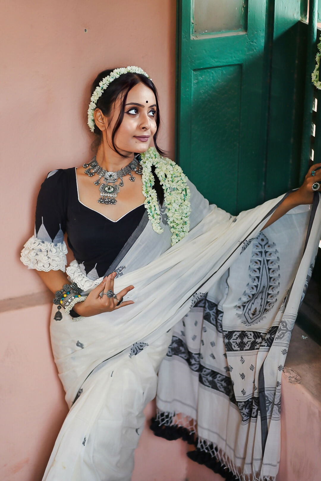 - Fabric: Cotton jamdani and has lining for both body and sleeves