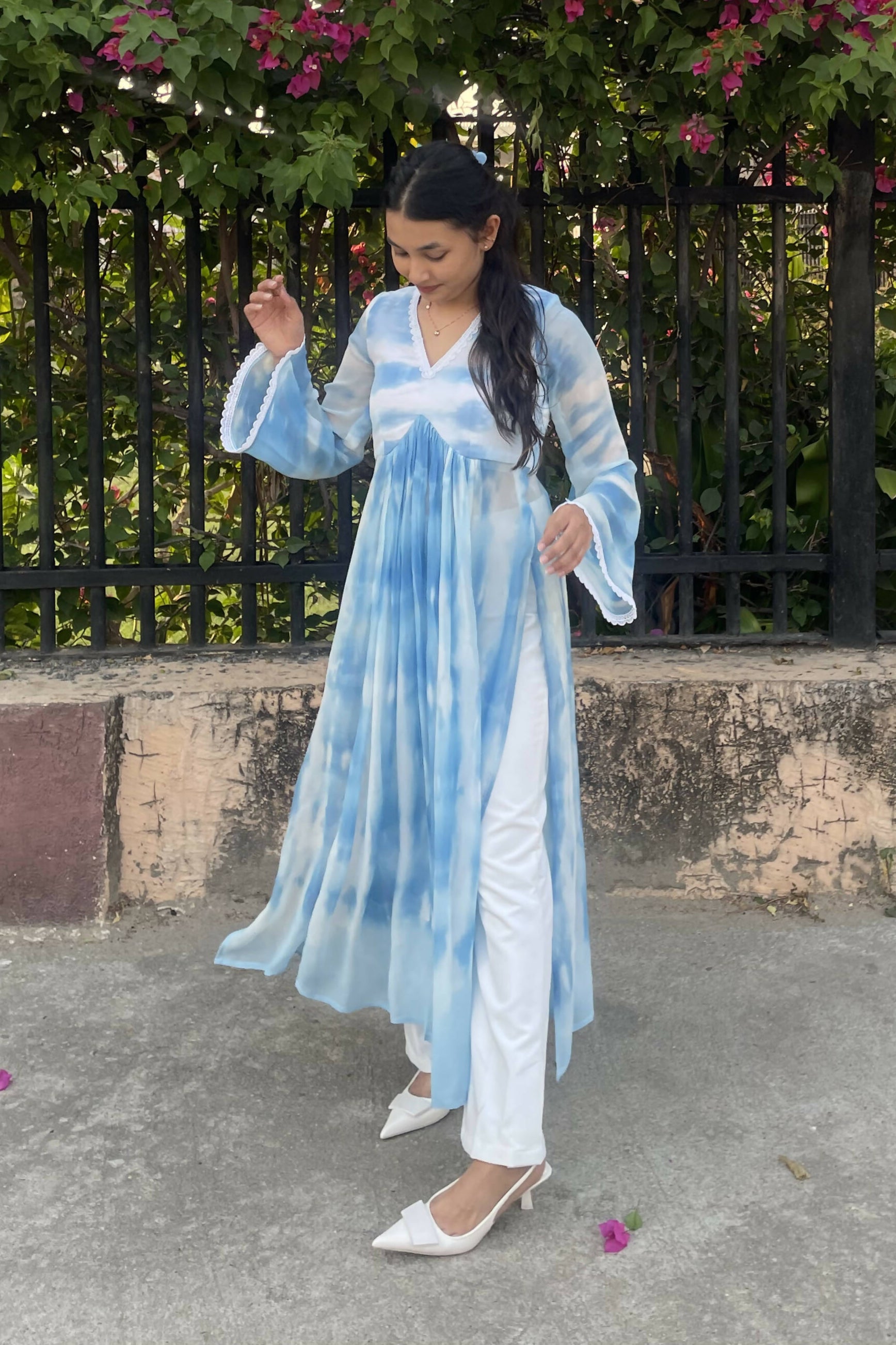 Each kurta is handcrafted using the ancient Shibori tie-dye technique, creating a unique and mesmerizing pattern that's as individual as you are. The blue and white hues blend harmoniously, adding a touch of grace to your ensemble.