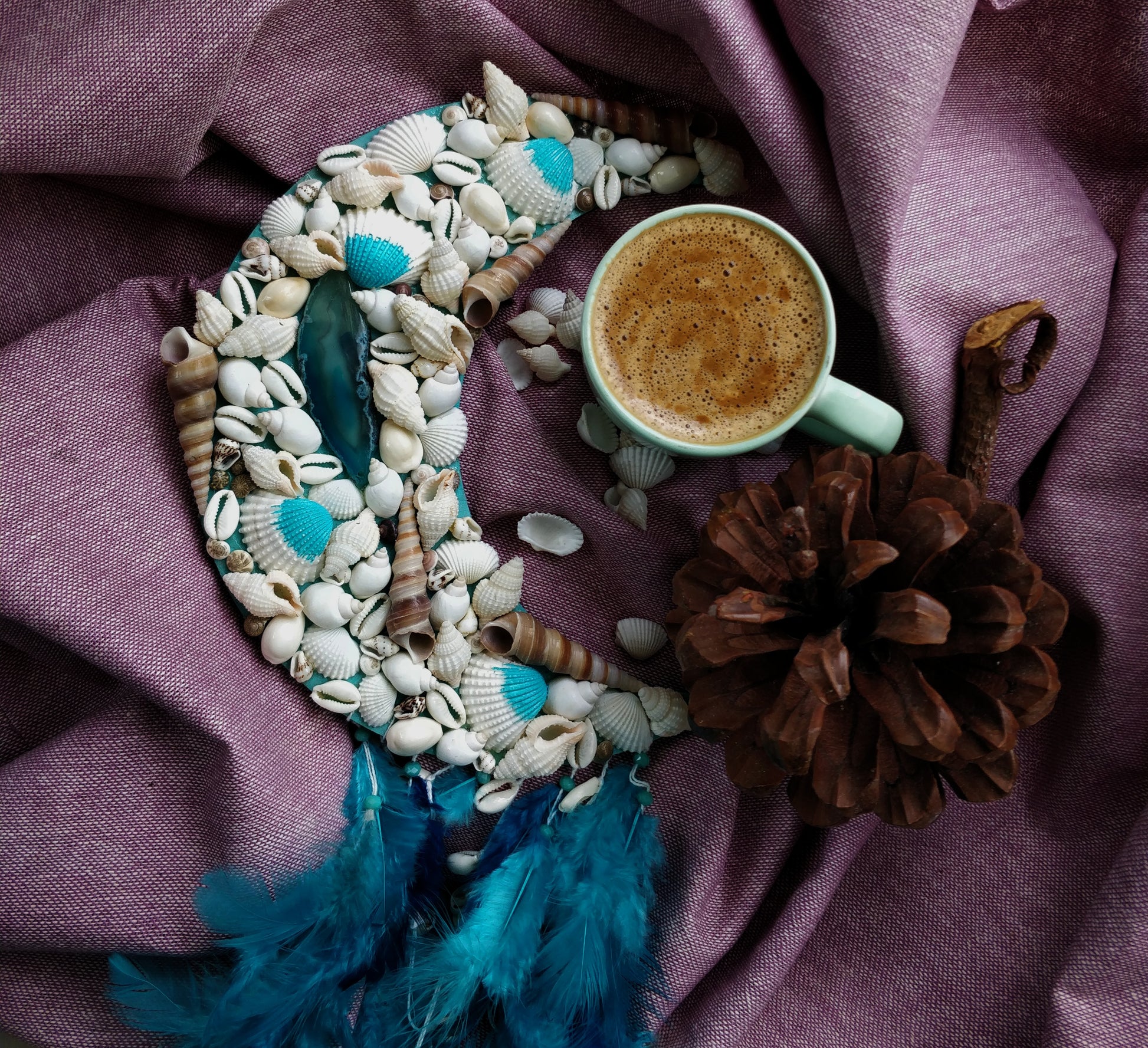 Materials: Natural Shells, Feathers, Beads, Medium Density Fibre Board