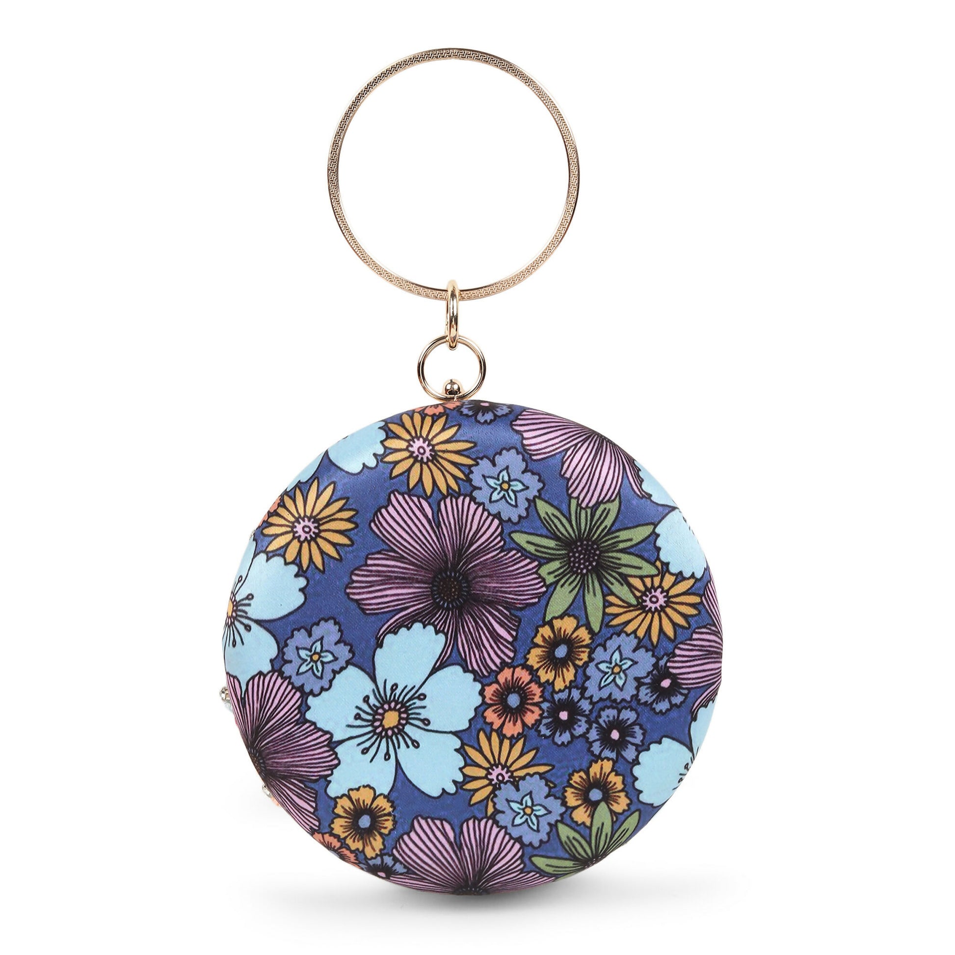 The Blue Threadwork Printed Round Clutch is a perfect blend of artistry and elegance, adorned with delicate thread work that adds a refined touch to its vibrant design. Its detachable bangle handle and golden sling chain offer stylish versatility, allowing you to carry it with ease and grace. This clutch effortlessly combines modern flair with timeless craftsmanship, making it an ideal accessory for elevating any outfit.