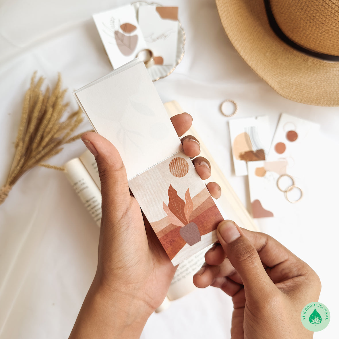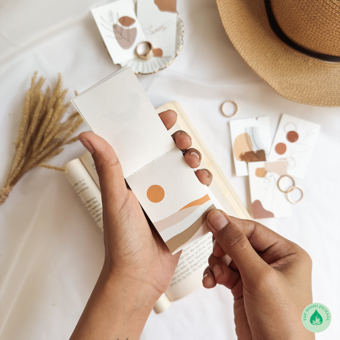 A booklet with aesthetic abstract designs inspired by nature, femininity, and intriguing shapes is sure to awaken your creativity and infuse your pages with a whimsical charm. Embracing a warm and earthy colour palette, it brings a sense of grounding and tranquility to your pages. Whether you're a seasoned journaling enthusiast or just beginning your creative journey, our Boho Abstract Design Booklet provides endless opportunities for self-expression.How to stick: Use fevistick, glue tape or washi tape to paste it.