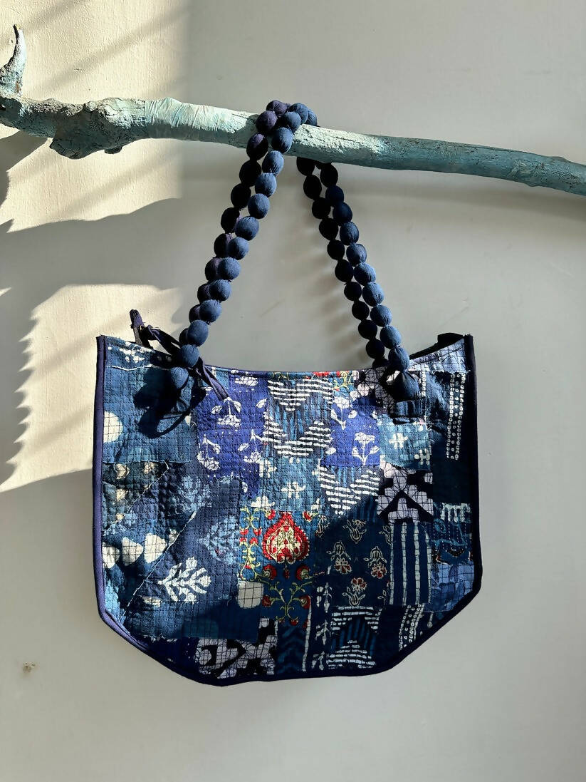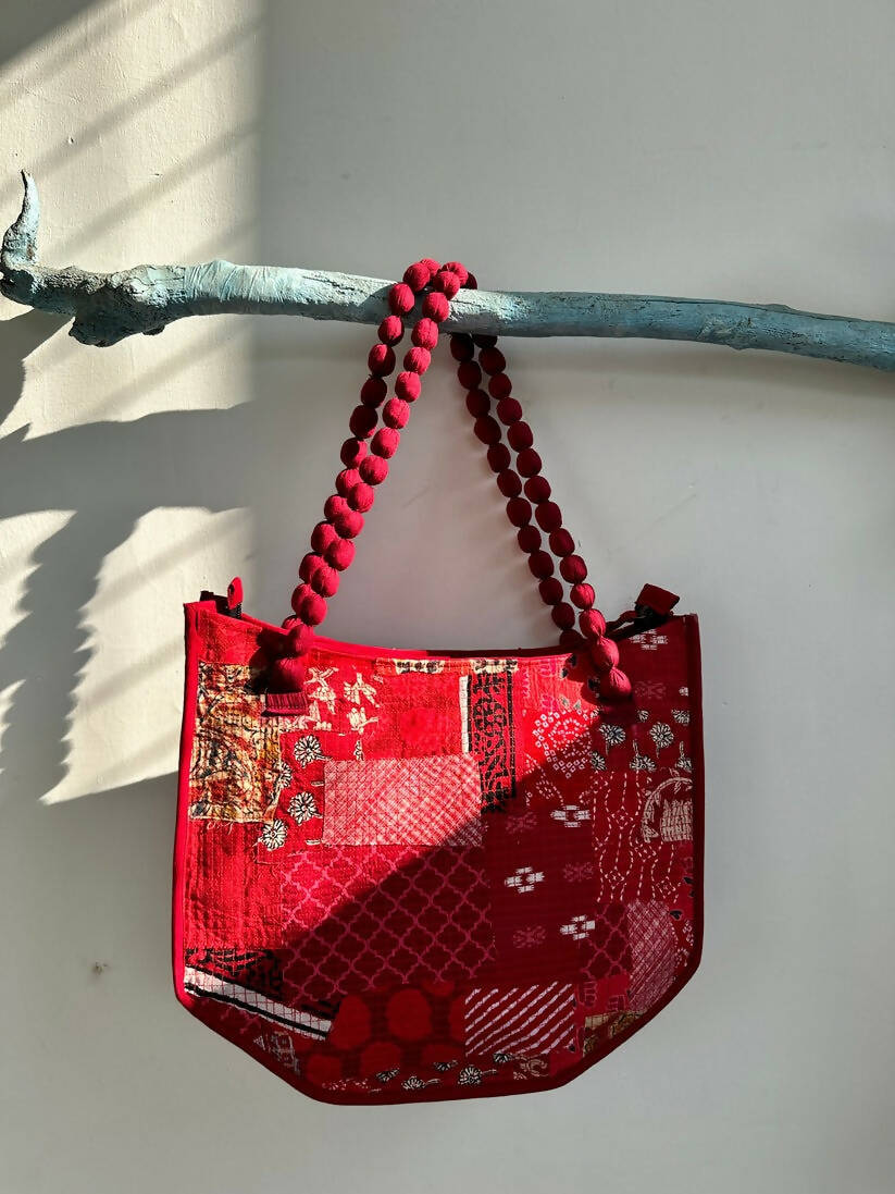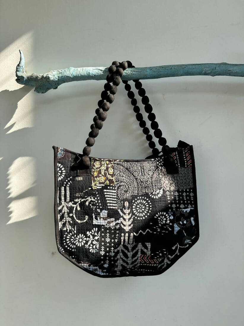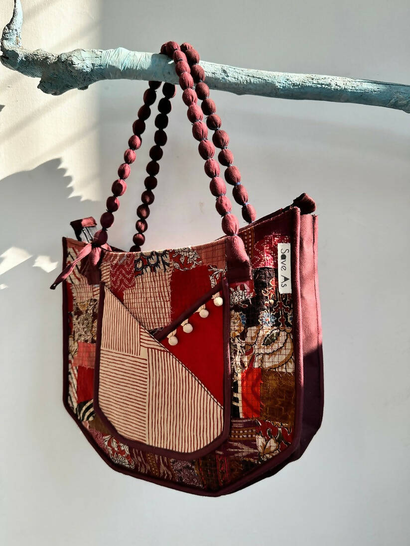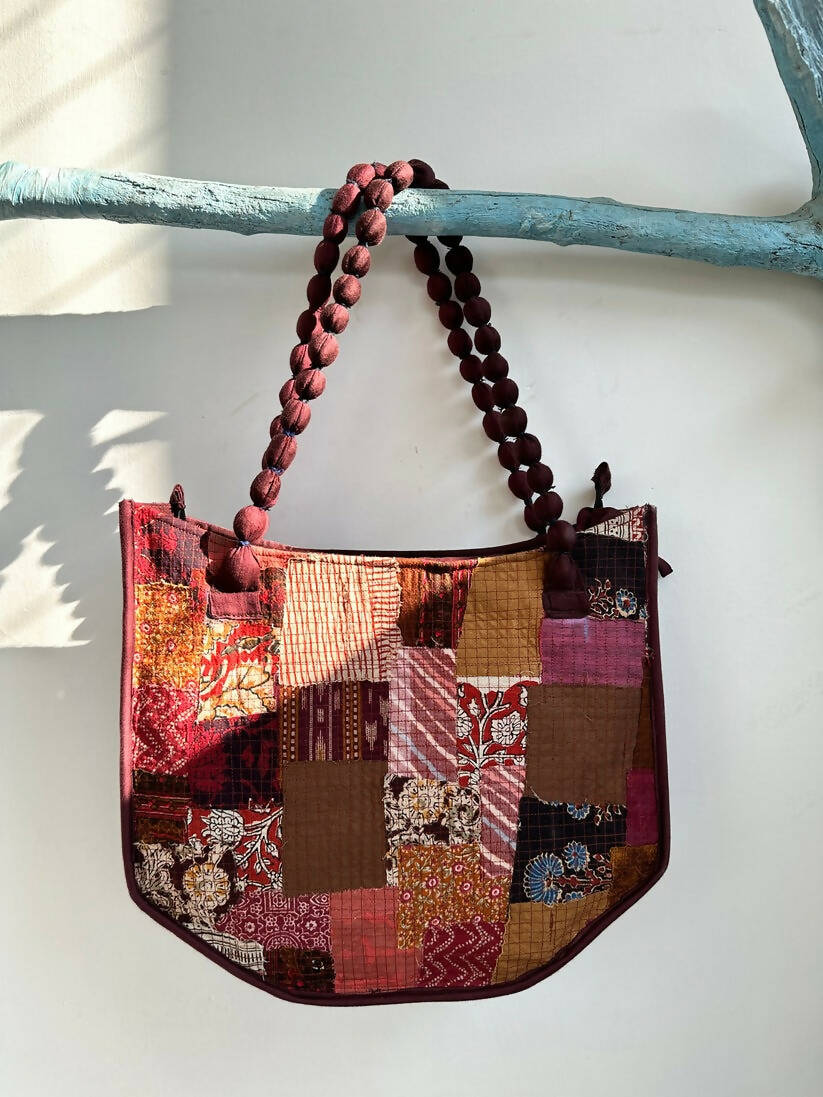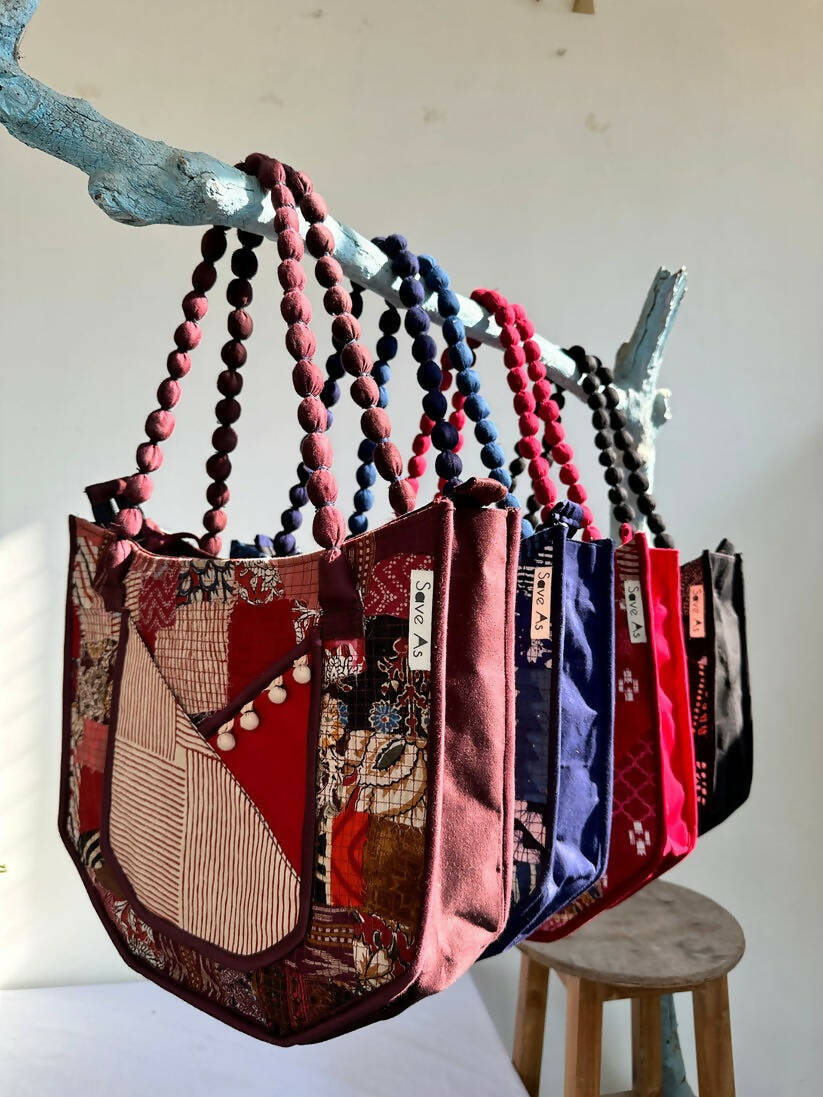 Embrace the unique fusion of sustainability and style with our Boho Chic Scrap Fabric Handbag. Meticulously crafted from up-cycled fabric scraps, this handbag stands as a beacon of eco-friendly fashion. Featuring a beaded fabric handle that adds an artisanal flair, this bag is designed to turn heads and make a statement. Its bohemian charm is complemented by practical design elements like exterior and interior zippers, ensuring that your essentials are always within reach and secure.