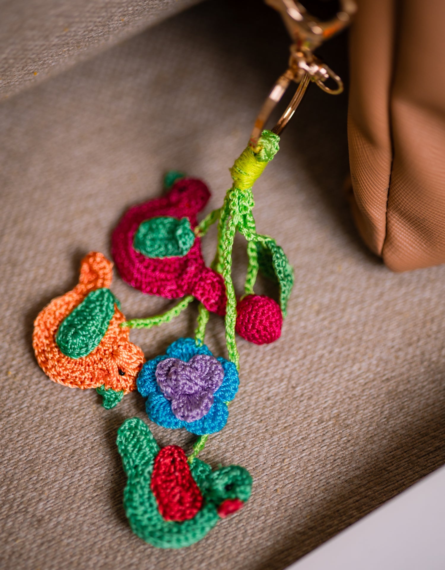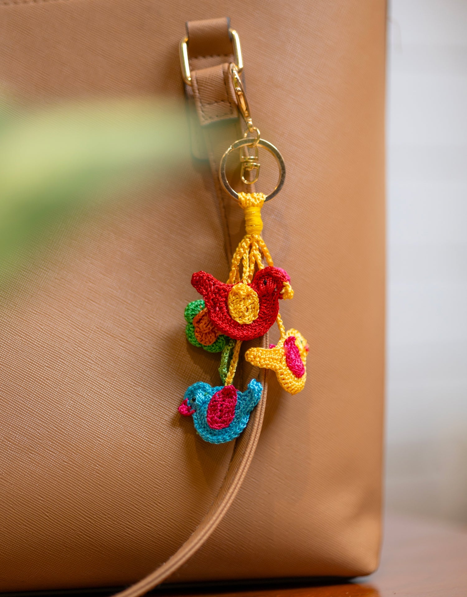 Add a playful touch to your accessories with our unique charms that feature intricately crafted crocheted birds. Whether you want to jazz up your handbag, backpack, or keys, these adorable companions are sure to bring a smile to your face and a dash of fun to your everyday style.