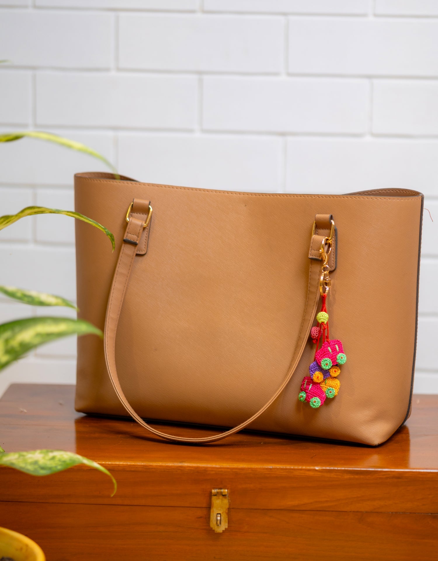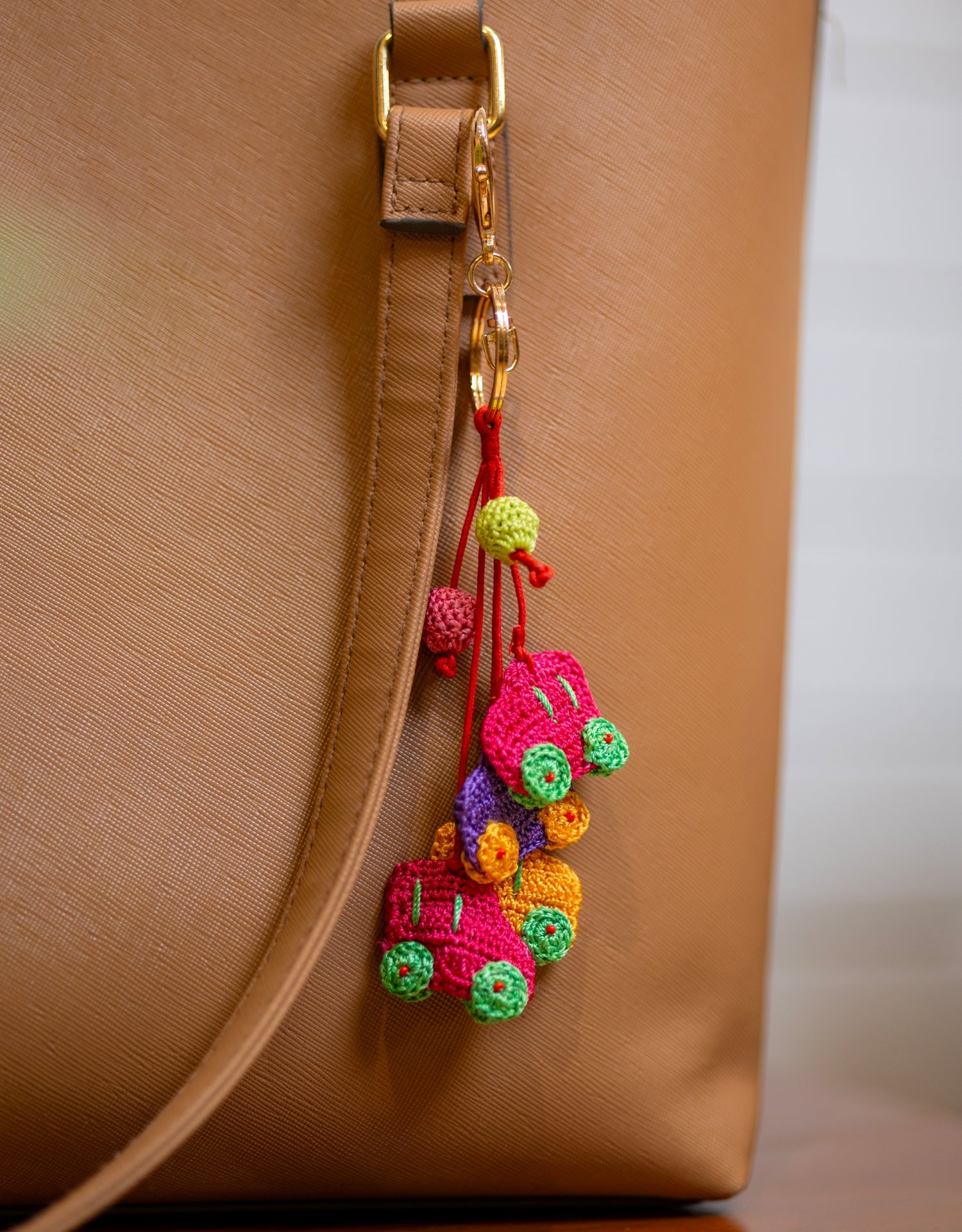 Add a boho tassel charm to brighten up your day! Hand it on your handbag, backpack or use it as a keychain to keep keys safe and easy to spot. Handcrafted with love by our women artisans, the Multicolor bag charm is created with a combination of intricately crafted cars and little beads. These one of a kind, lightweight and easy-to-manage bag charms make for a lovely gift too!