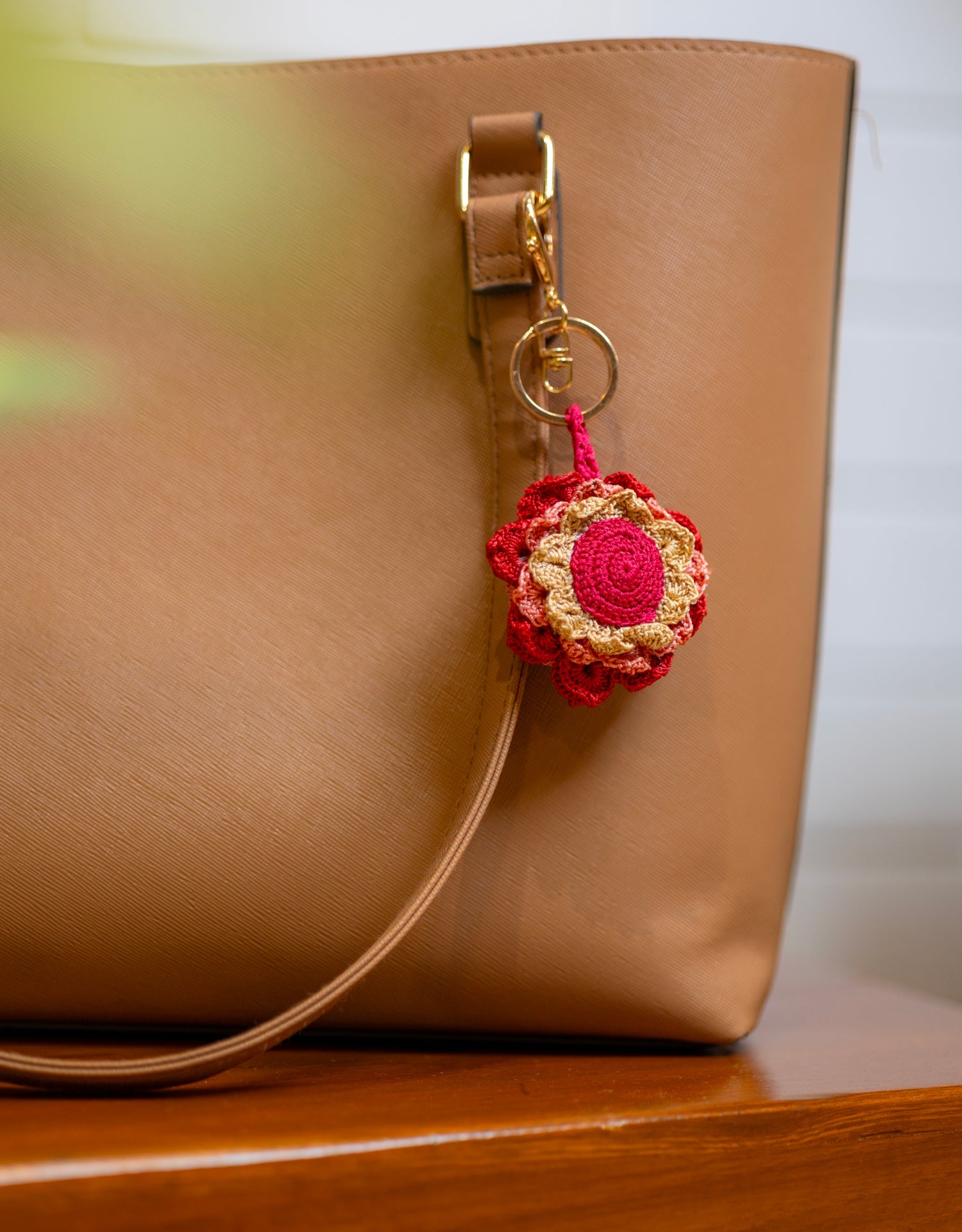 Bright, bold, and full of life — the Boho Bag Charm – Khushaal Dahelia is a handmade celebration of color and joy. Inspired by the vibrant dahlia flower, this charming accessory adds a festive, free-spirited flair to your bag with every bloom.