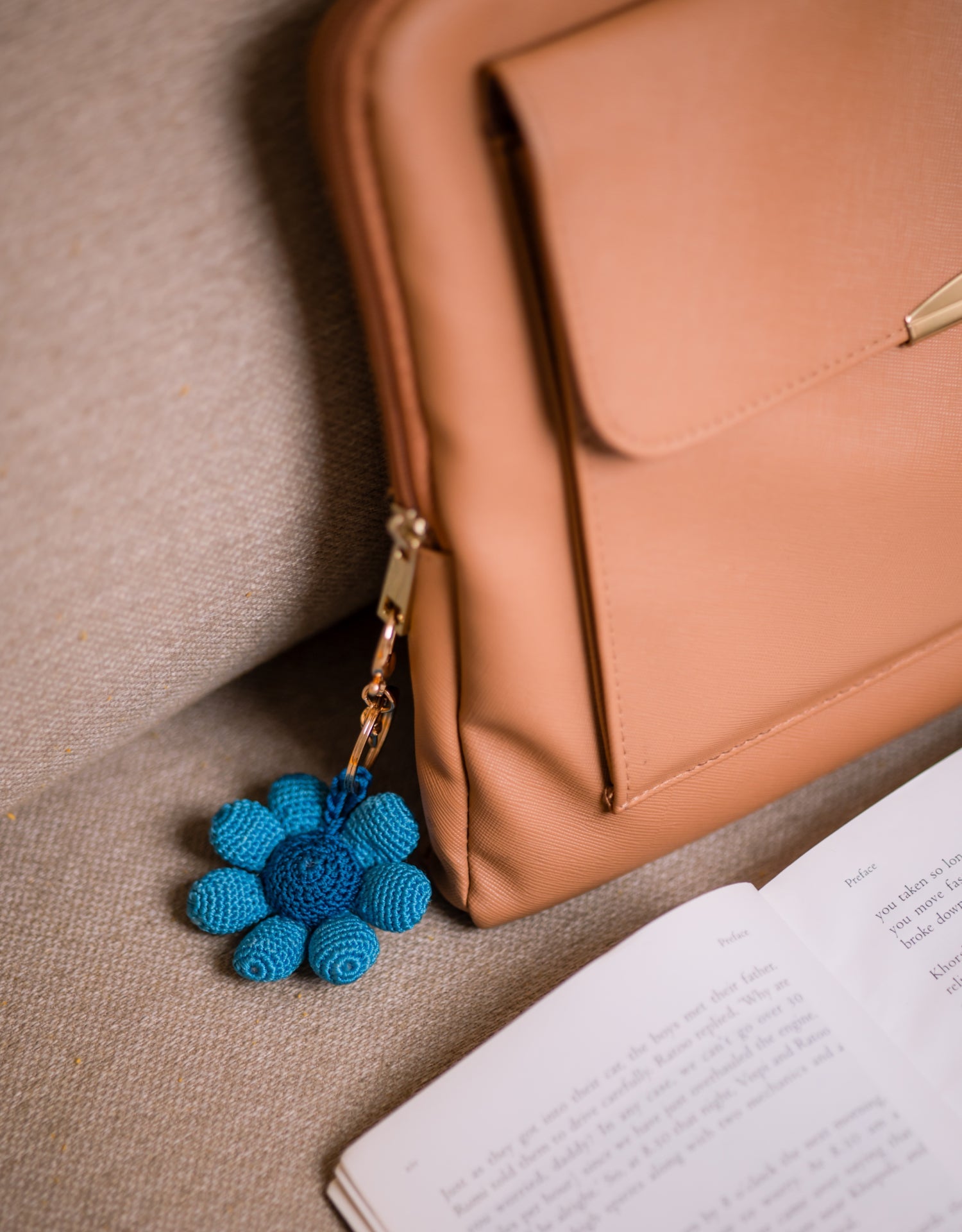 Elegant and serene, the Boho Bag Charm – Neela Phool is a handmade floral accent inspired by the quiet beauty of a single blue bloom. With its delicate craftsmanship and soothing tones, it adds a graceful, nature-kissed charm to your everyday carry.