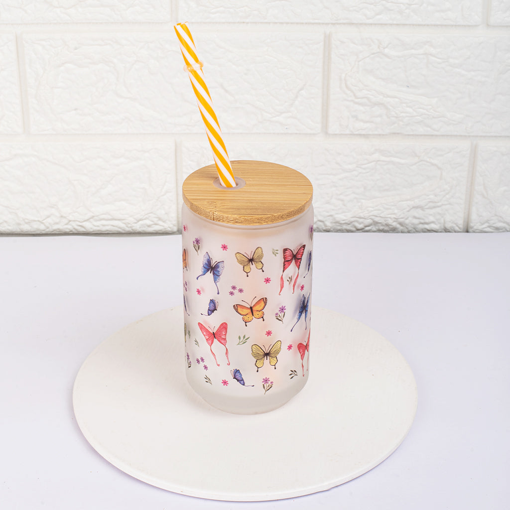- Content: Glass Jar + Wooden Lid + Plastic Straw