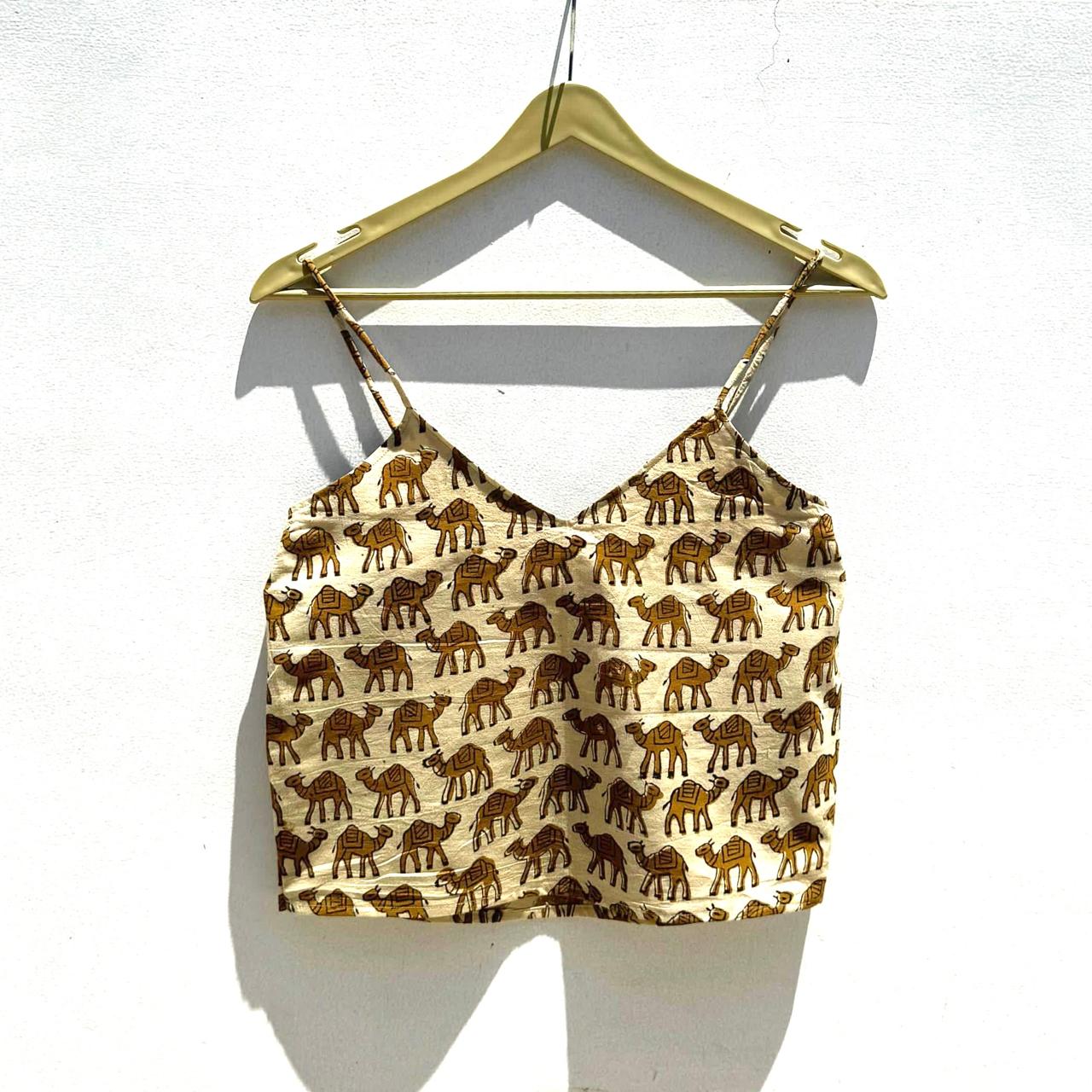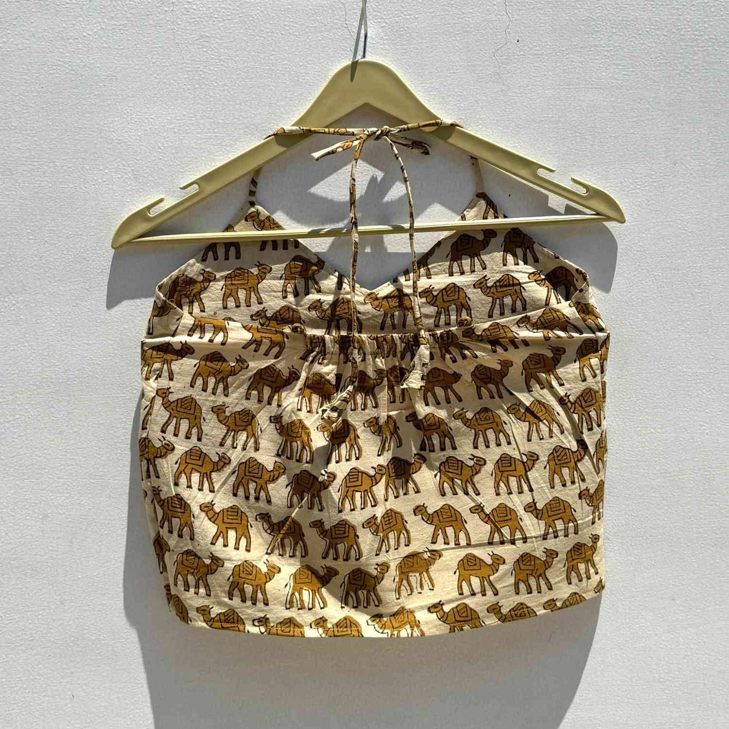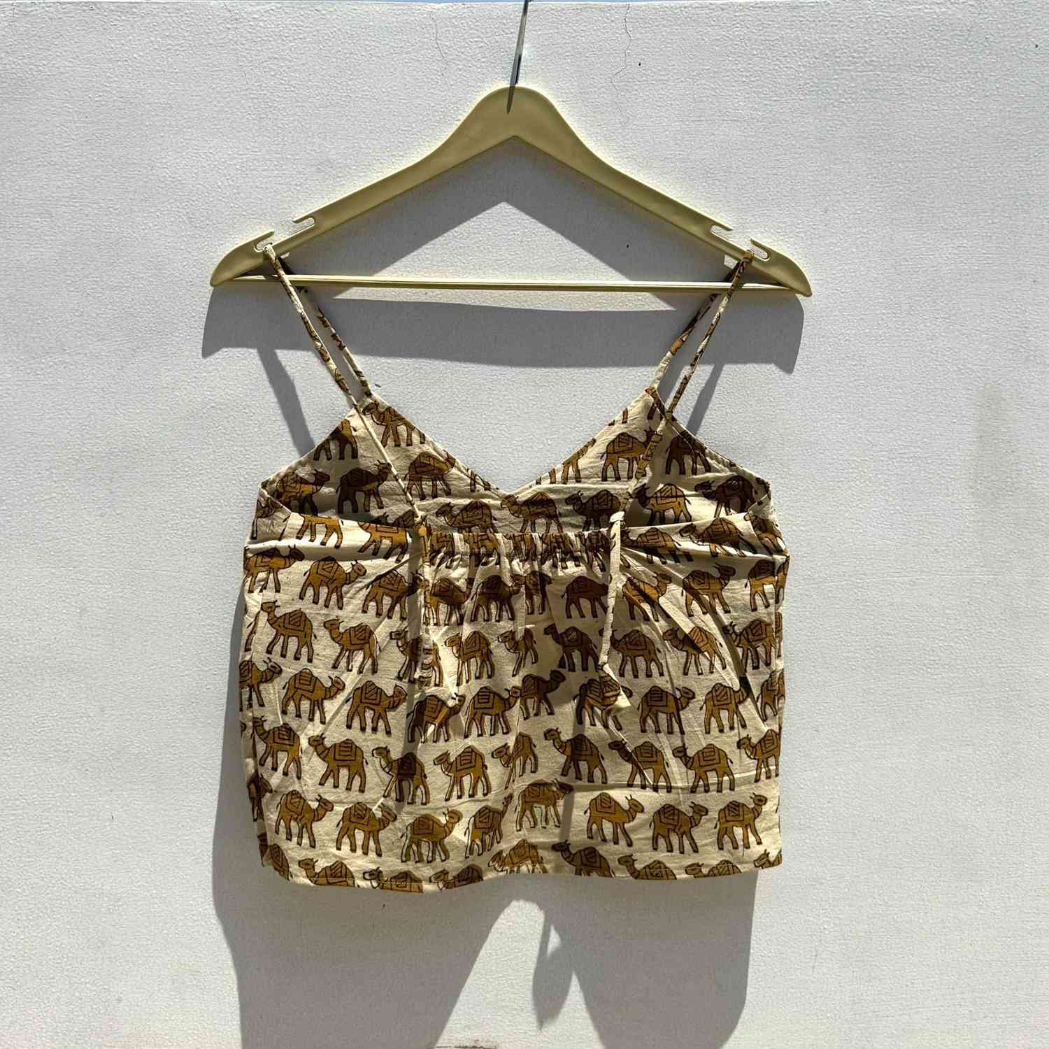 The Camel Handblock Printed Cotton Top is a beautifully crafted piece that blends traditional artistry with modern style. Made from soft, breathable cotton, this top features intricate handblock prints in warm camel tones, creating a rich and earthy aesthetic.