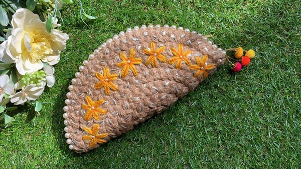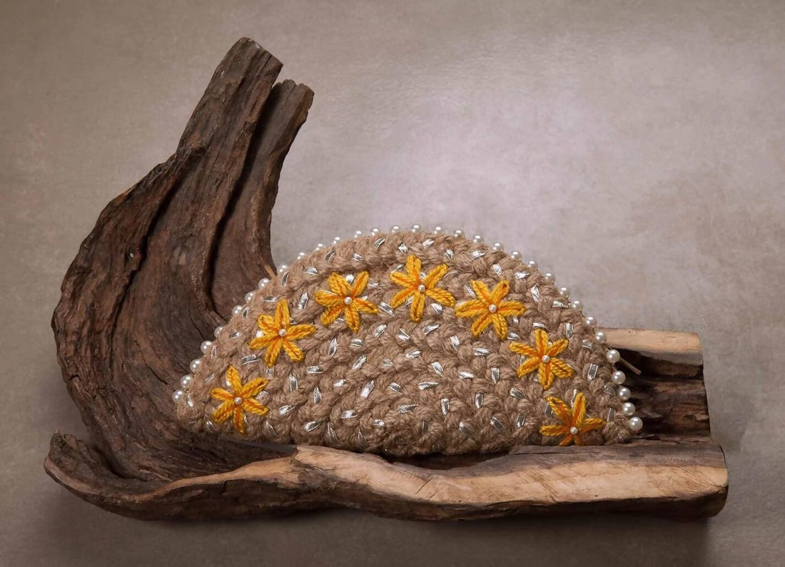 Half Moons are our signature design. The bag is handcrafted from a single jute dhaaga (thread). It takes over 10 hours of skilled work to put together this special piece for you. Every bag connoisseur deserves this unique clutch.