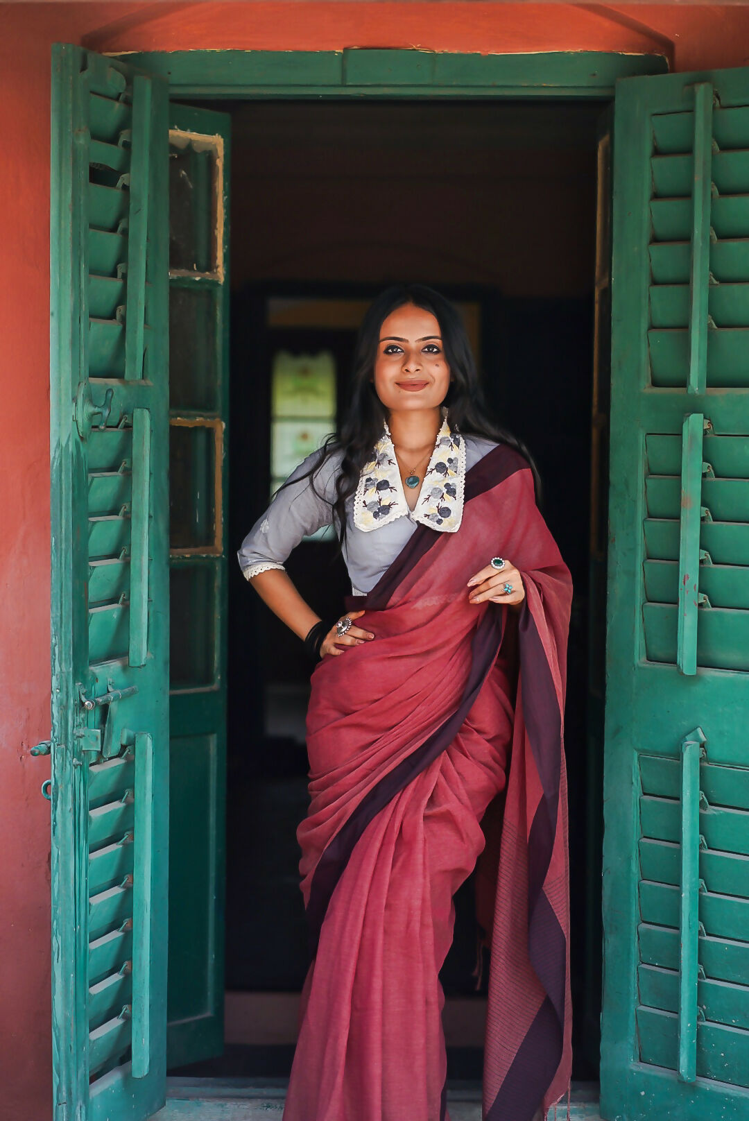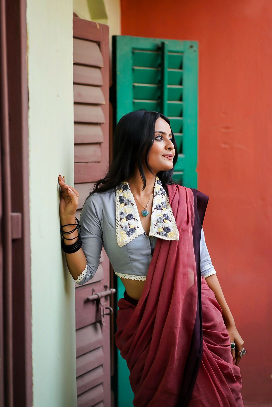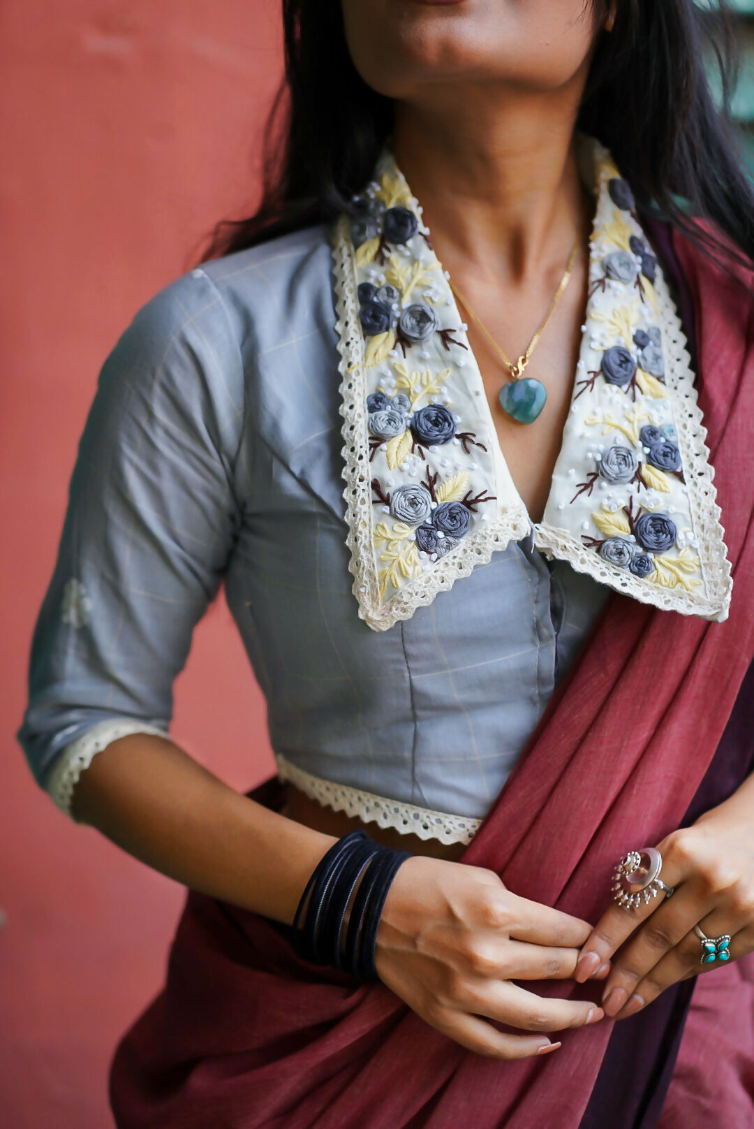 - Neckline: Collar