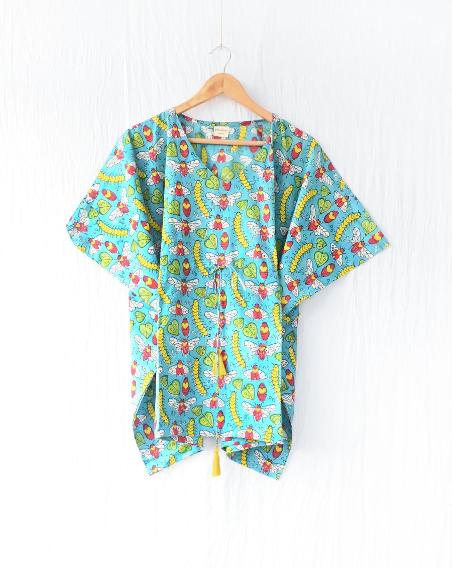 This handcrafted toptaan (short kaftan) is soft, breathable, and light, offering a sense of freedom and comfort. Perfect for enjoying your own company while reading a book in your favorite spot at home. Featuring beautiful handblock printing, it’s made from 100% soft cotton for a cozy, luxurious feel.
