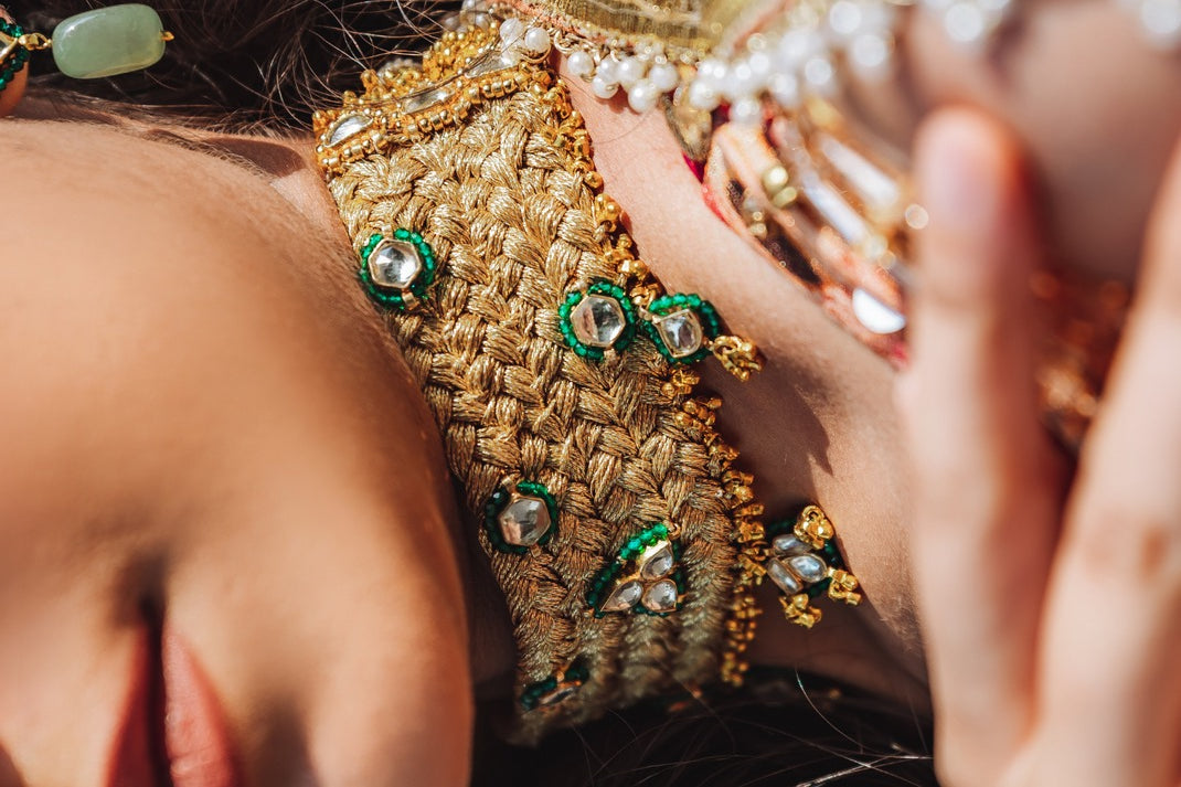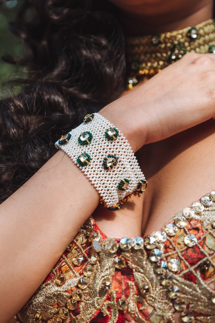 Cheed Jaali Choker/Bracelet Set Green & Blue