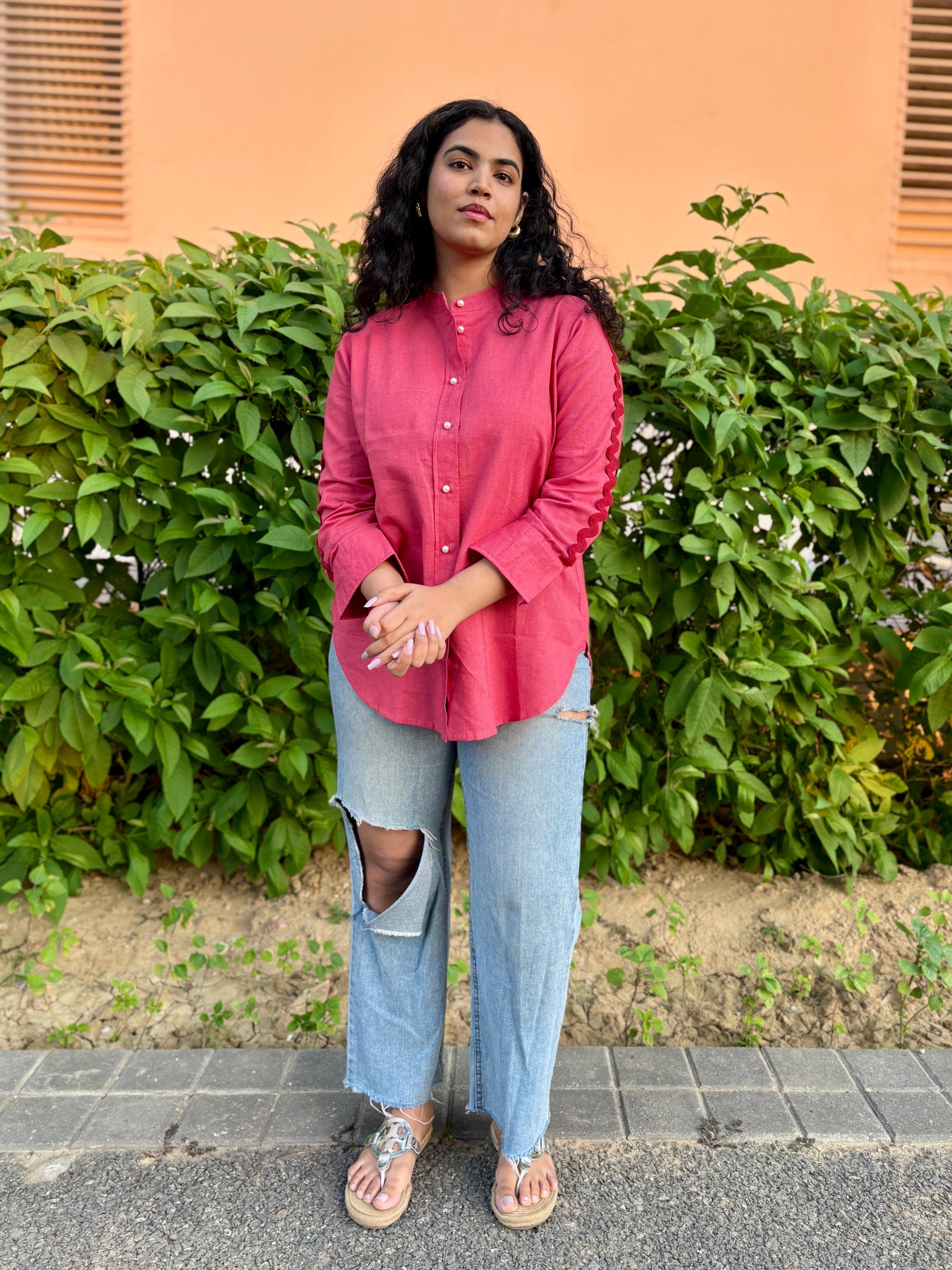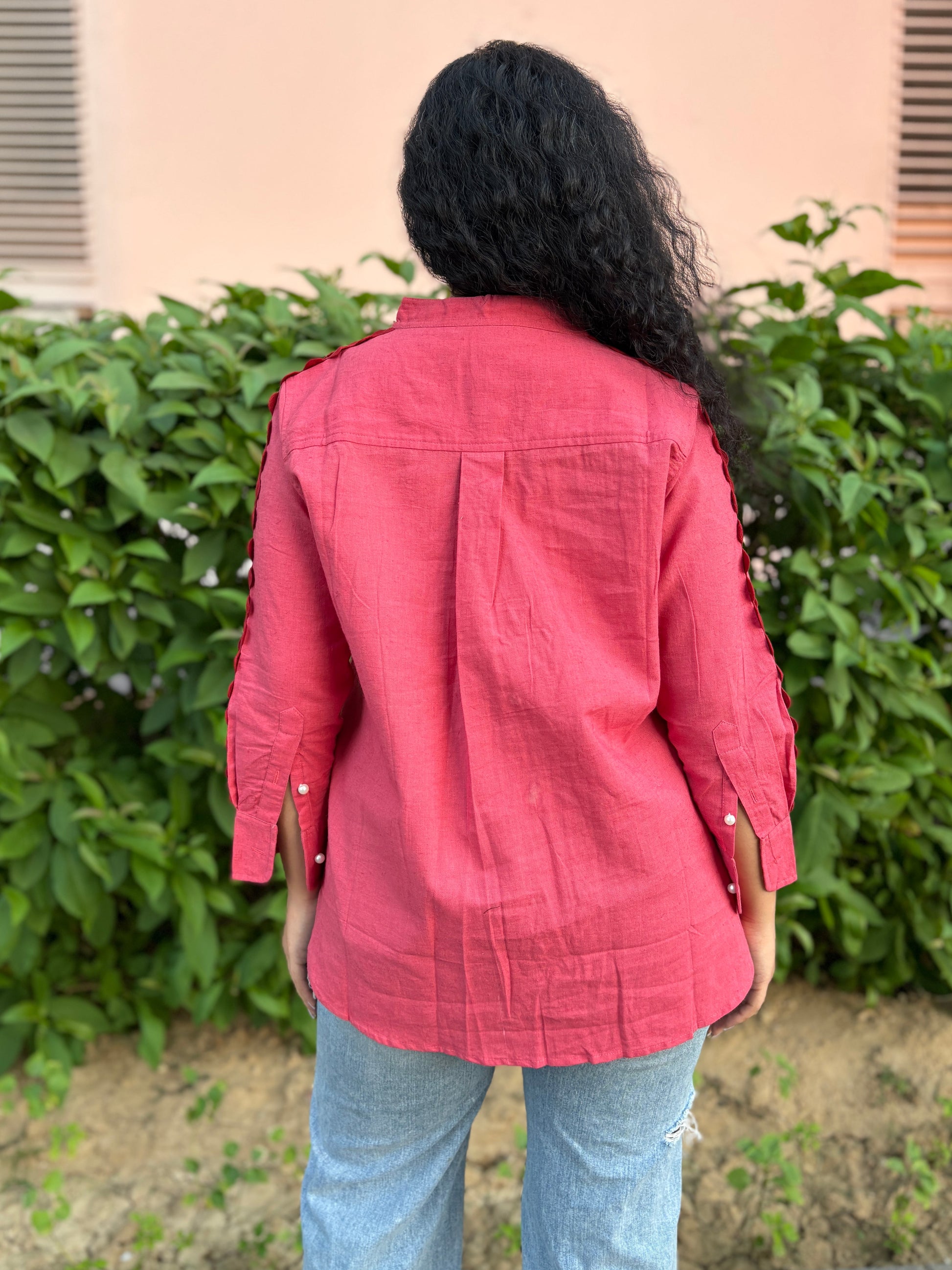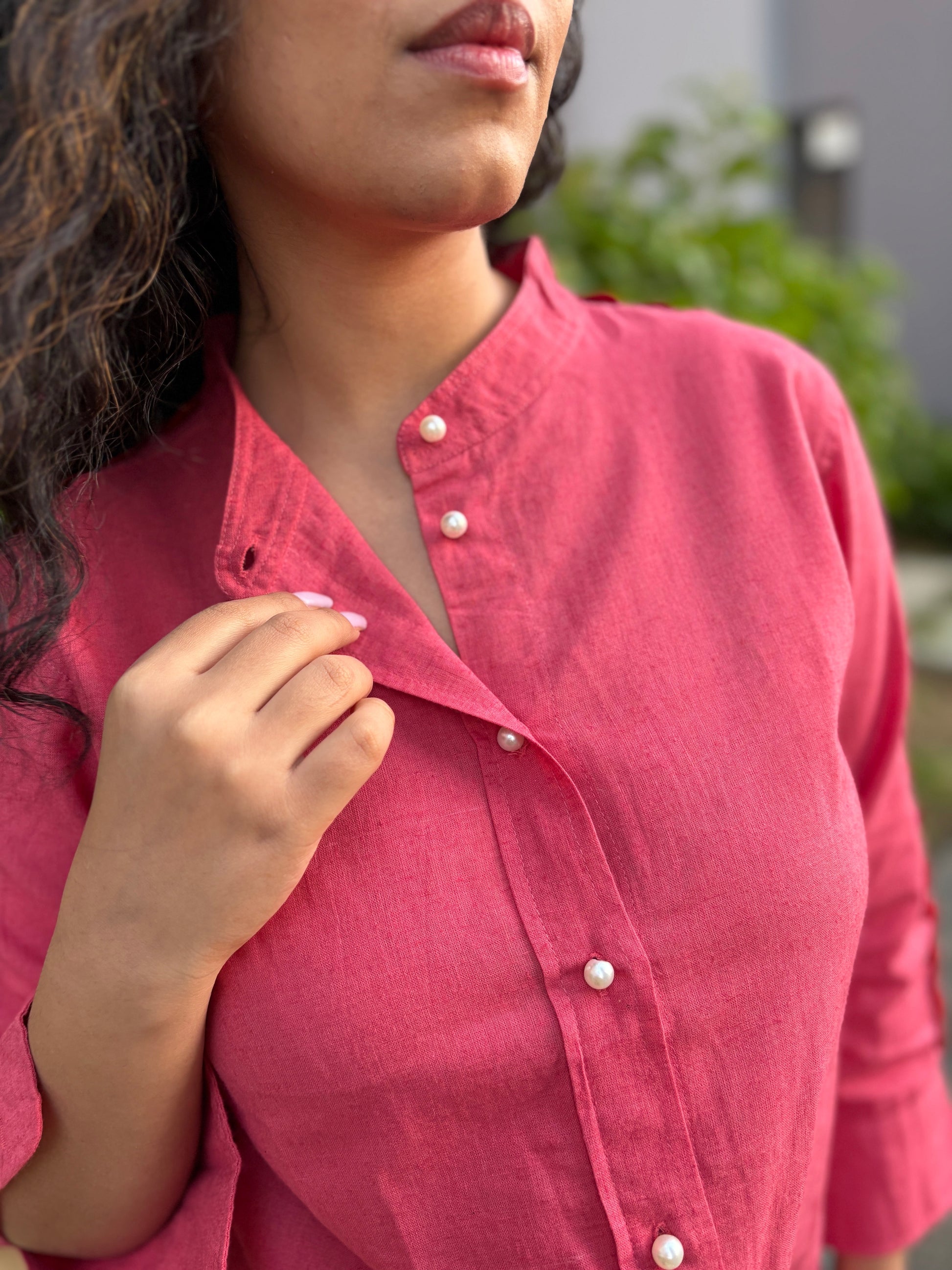 Effortless luxury in every thread. Crafted from premium linen that softens with time, this relaxed-fit shirt features a sleek mandarin collar and delicate pearl buttons for a refined touch. Light, breathable, and endlessly versatile—your perfect blend of comfort and elegance.