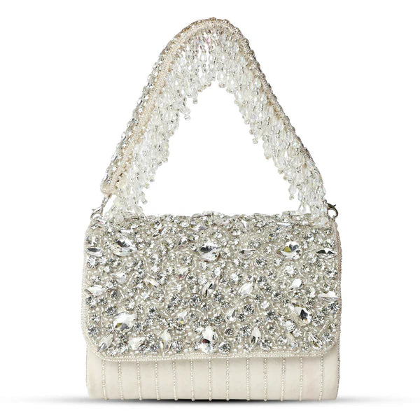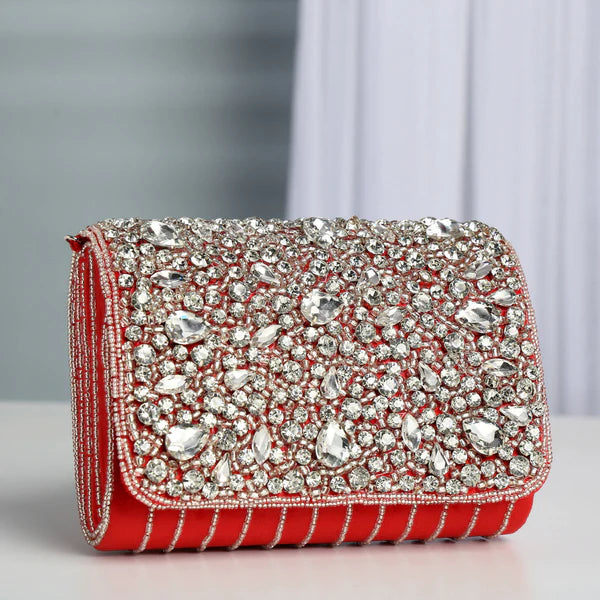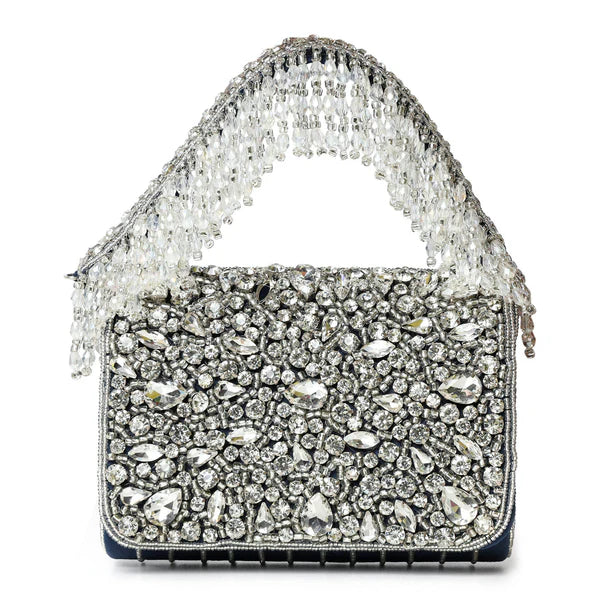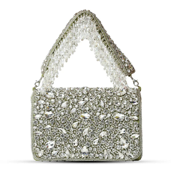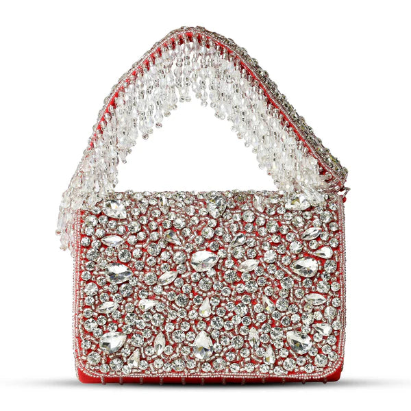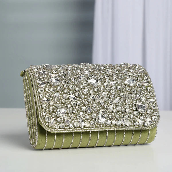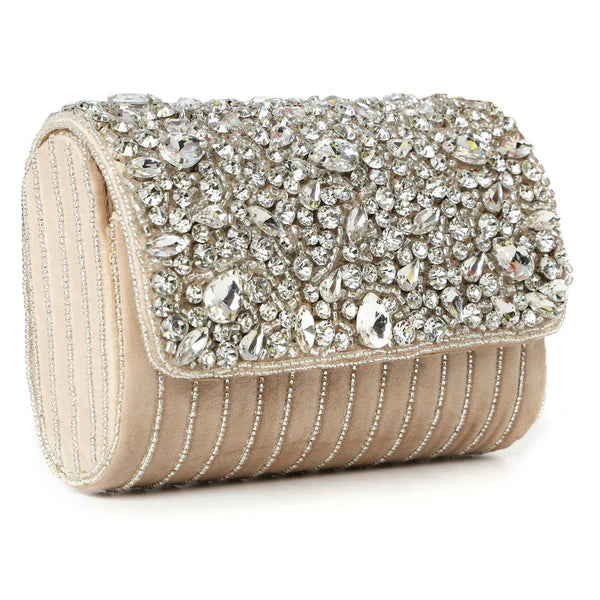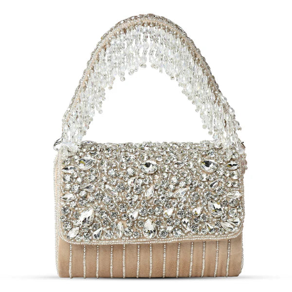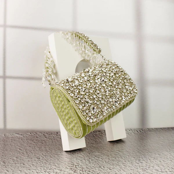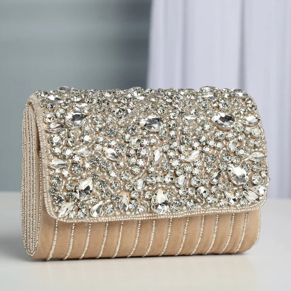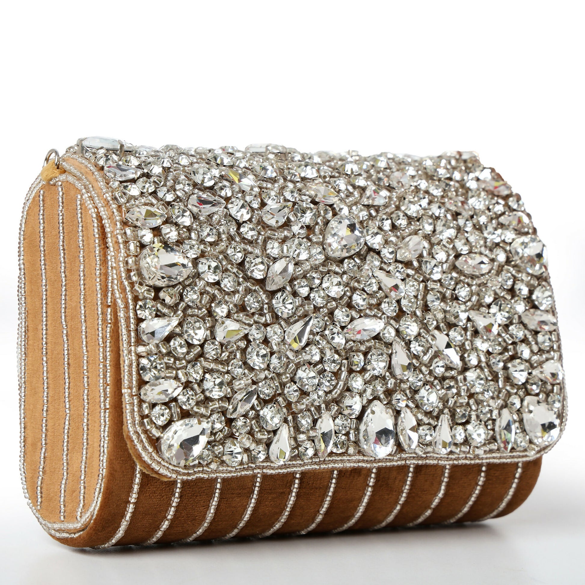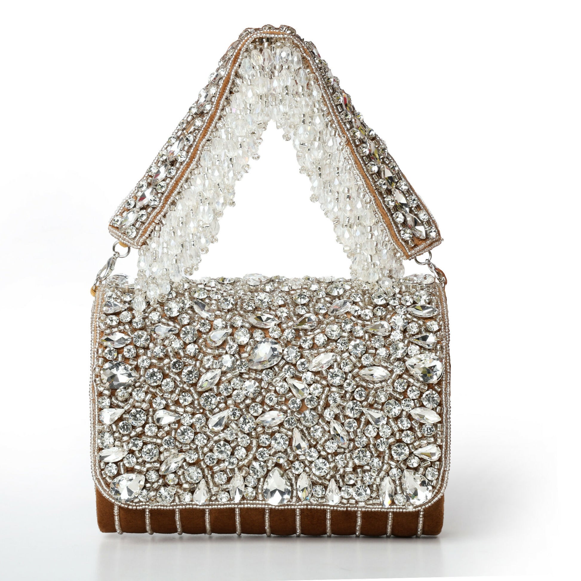 Brown Studded Flap Bag, meticulously crafted on a suede base with eye-catching studs. Complete with a short handle featuring a stylish tassel, this chic accessory effortlessly combines elegance with modern flair.